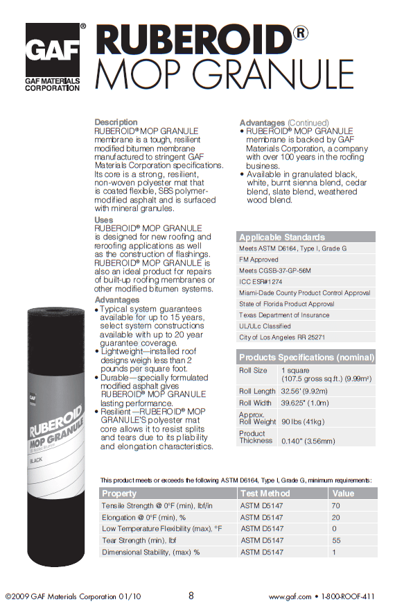 RUBEROID® MOP Smooth Membrane | GAF Roofing