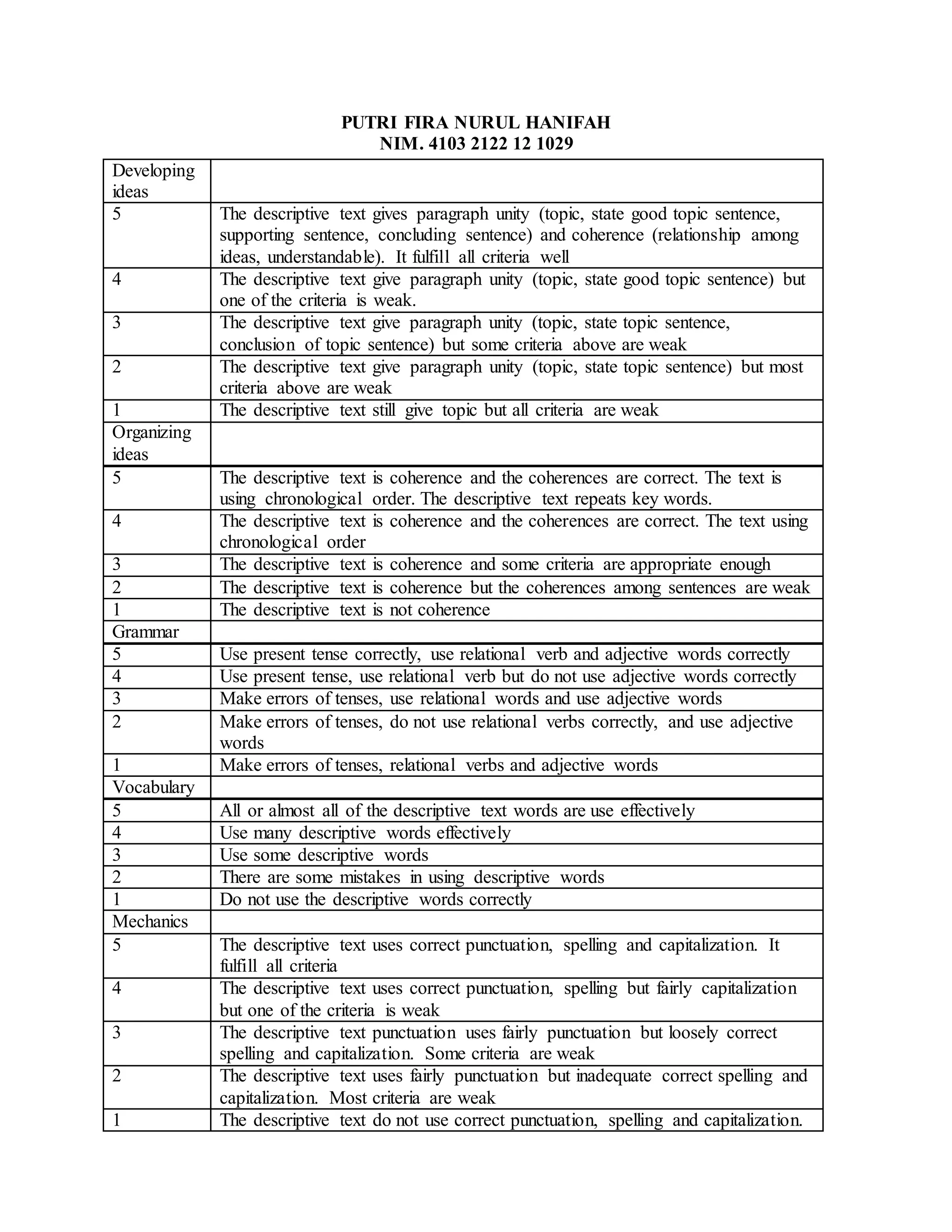 Rubrik Penilaian Descriptive Text | PDF