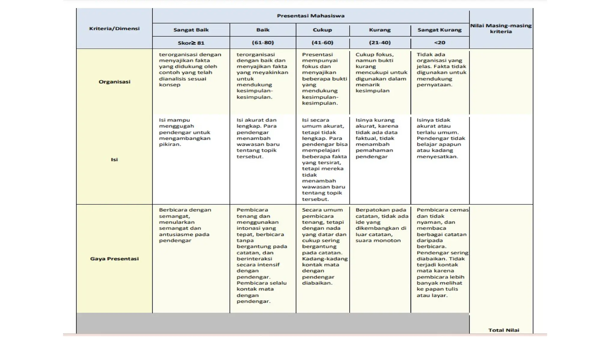 Rubrik Skor Diskusi - Writing I | PDF | Word | Grammar