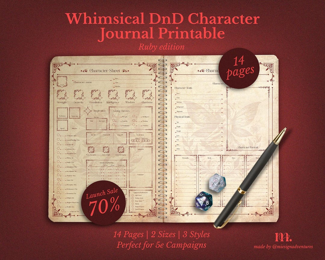 Dnd 5e Character Journal Printable | RPG PDF | Ruby Edition | Fantasy ...