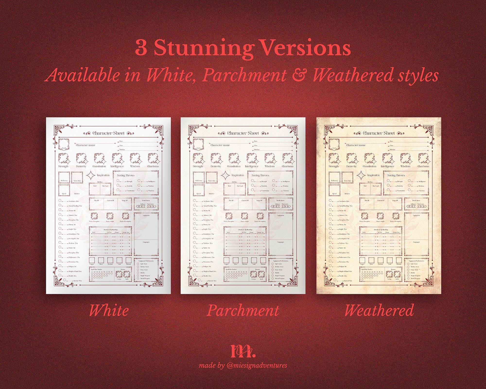 Dnd 5e Character Sheet Printable | Whimsical Ruby Edition | Dungeons ...