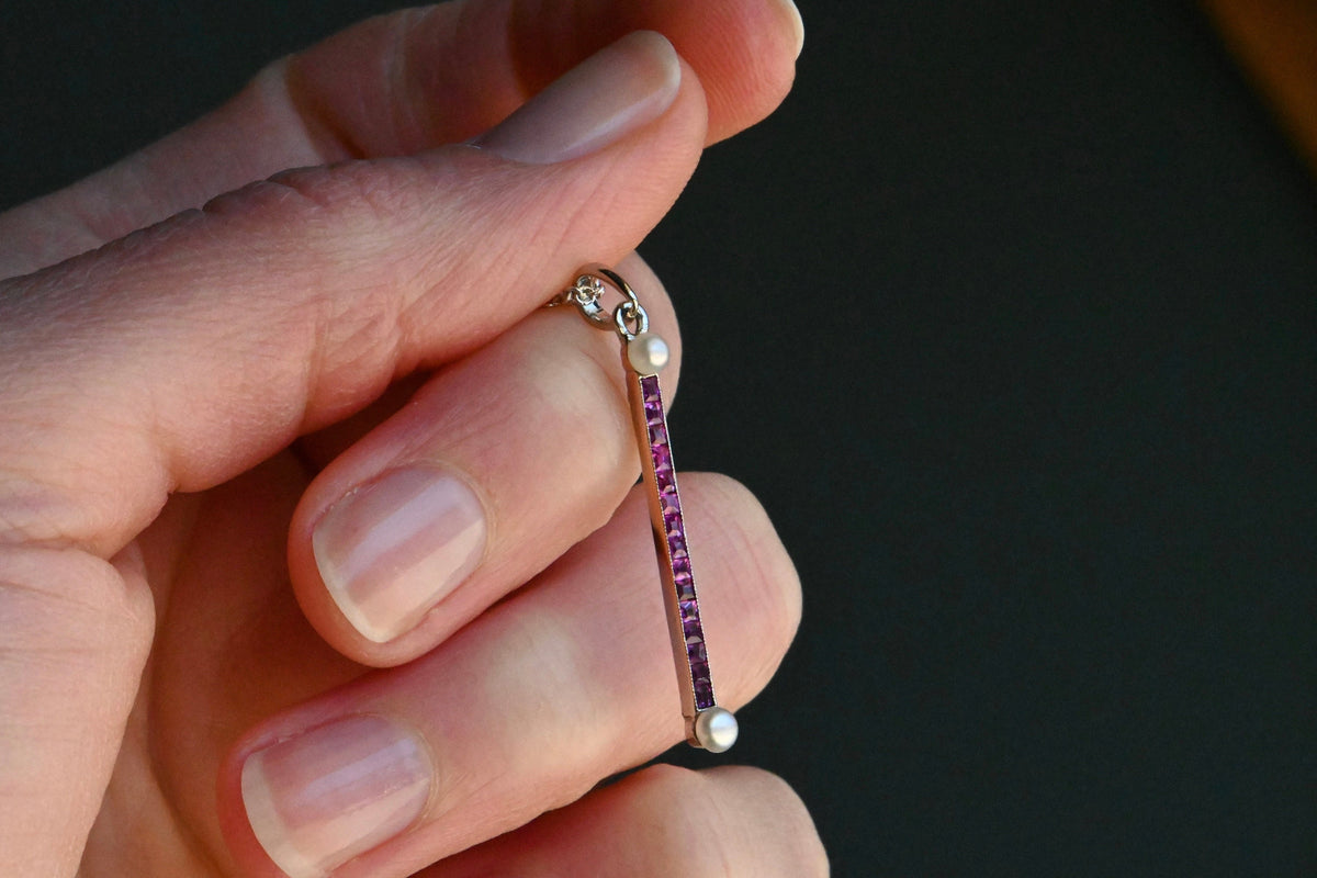 Antique 1930s ruby and pearl tiny bar pin pendant – Jean Jean Vintage