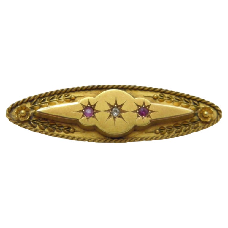 Victorian Gold, Silver, Diamond and Ruby Bar Pin for sale at auction ...