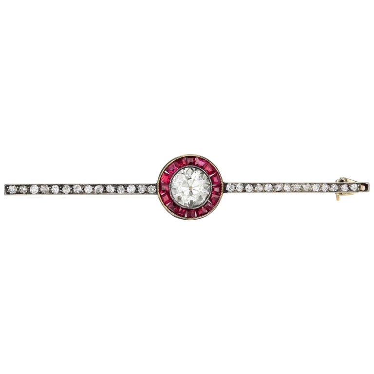 Antique Diamond and Ruby Bar Pin For Sale at 1stDibs | antique bar pin