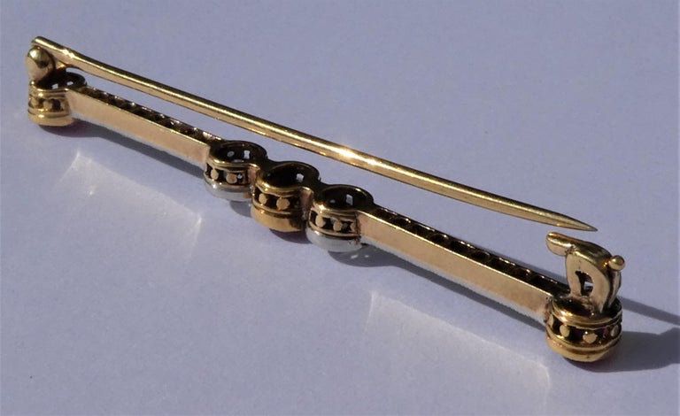 Antique English 15 Carat Gold Ruby and Diamond Bar Pin For Sale at 1stDibs