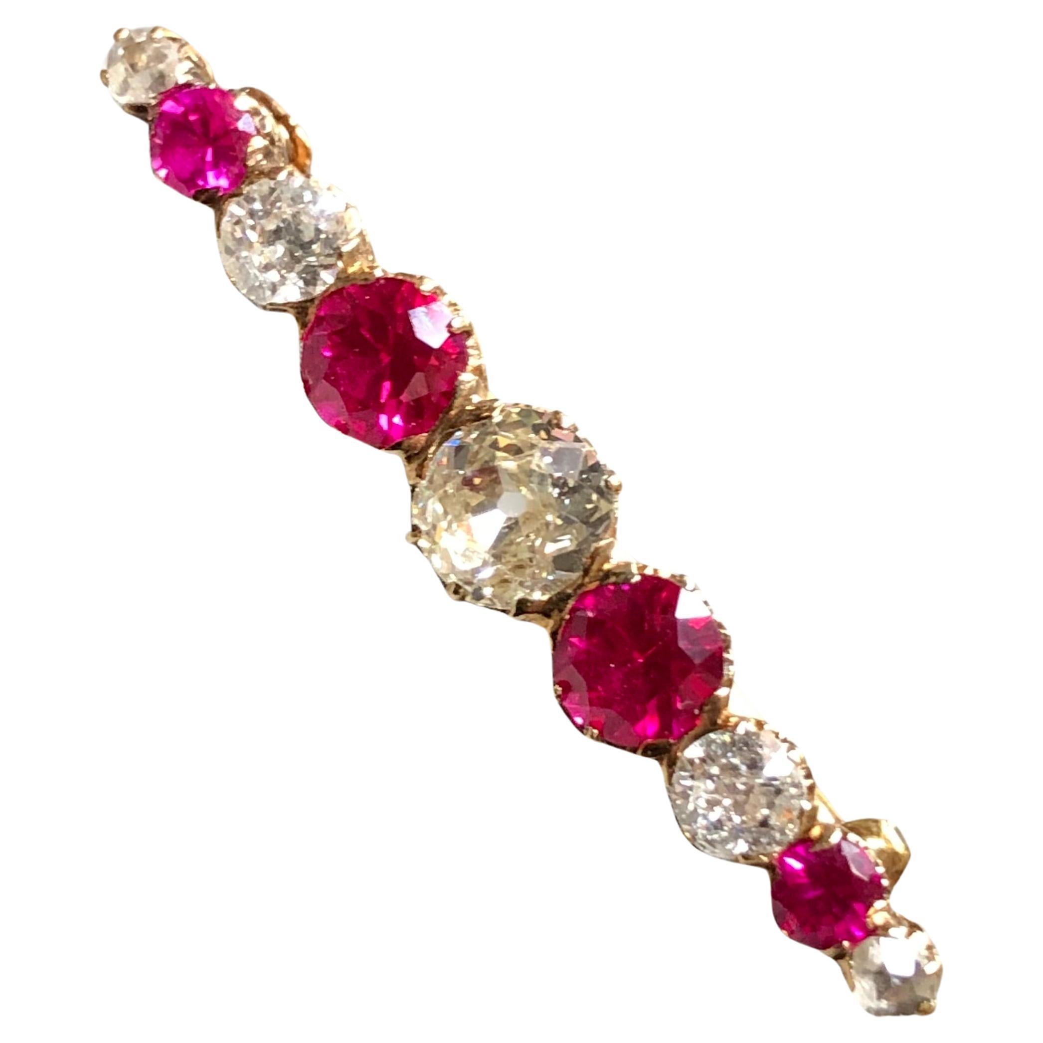 Antique Diamond and Ruby Bar Pin For Sale at 1stDibs