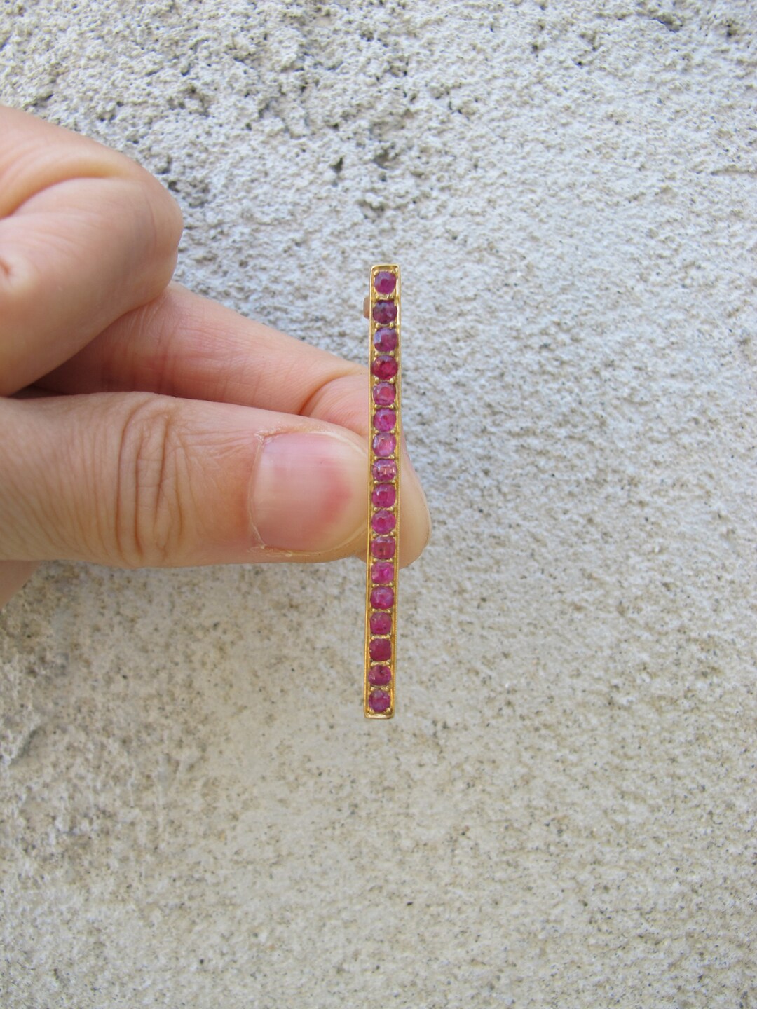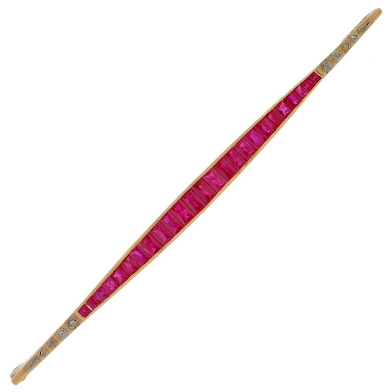 Long Edwardian Burmese Ruby and Diamond Gold Bar Pin at 1stDibs