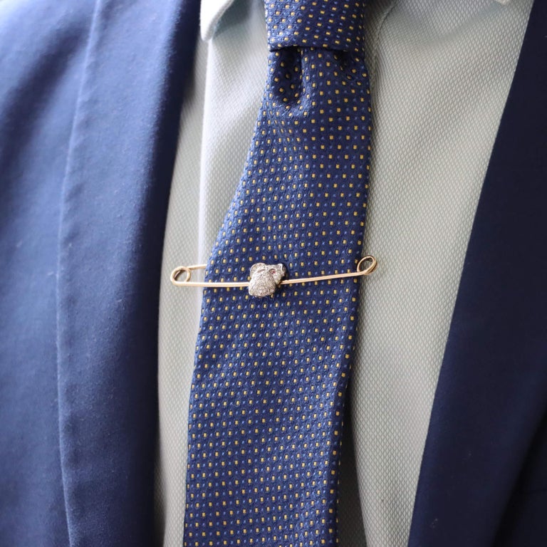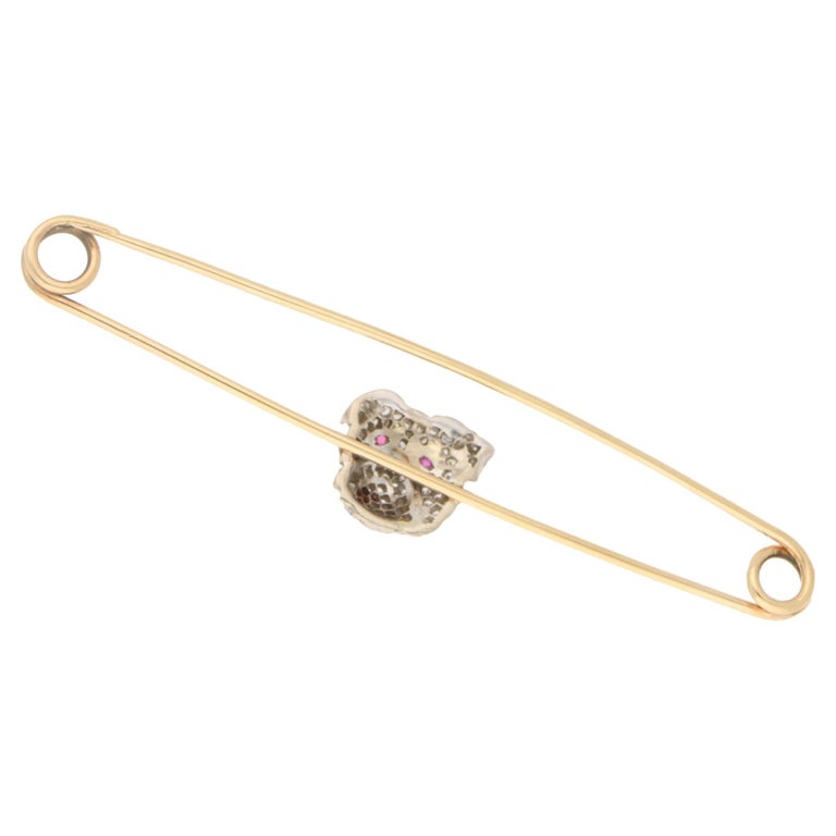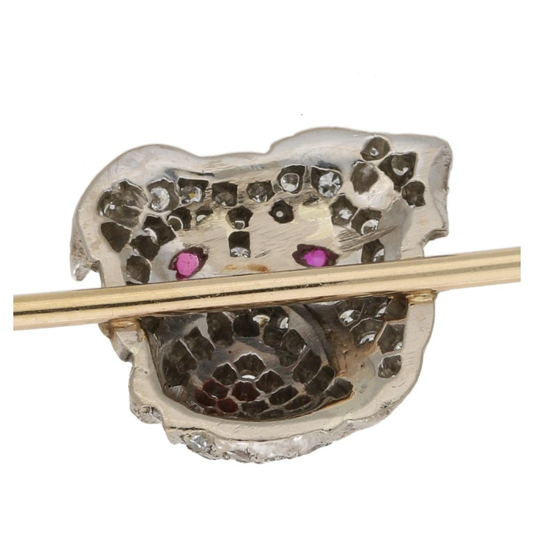 Vintage British Bulldog Diamond and Ruby Bar Pin Set in Gold For Sale ...