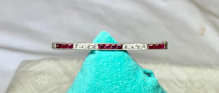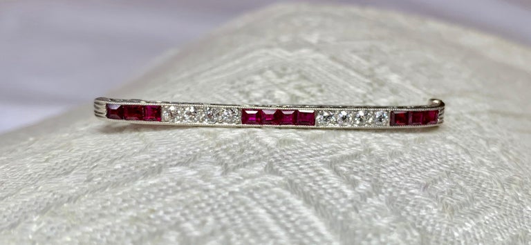 Stunning Art Deco 1.2 Carat Ruby Diamond Platinum Bar Brooch Pin at 1stDibs