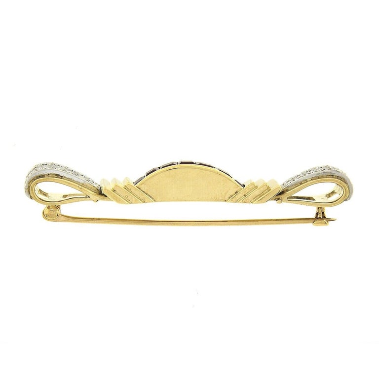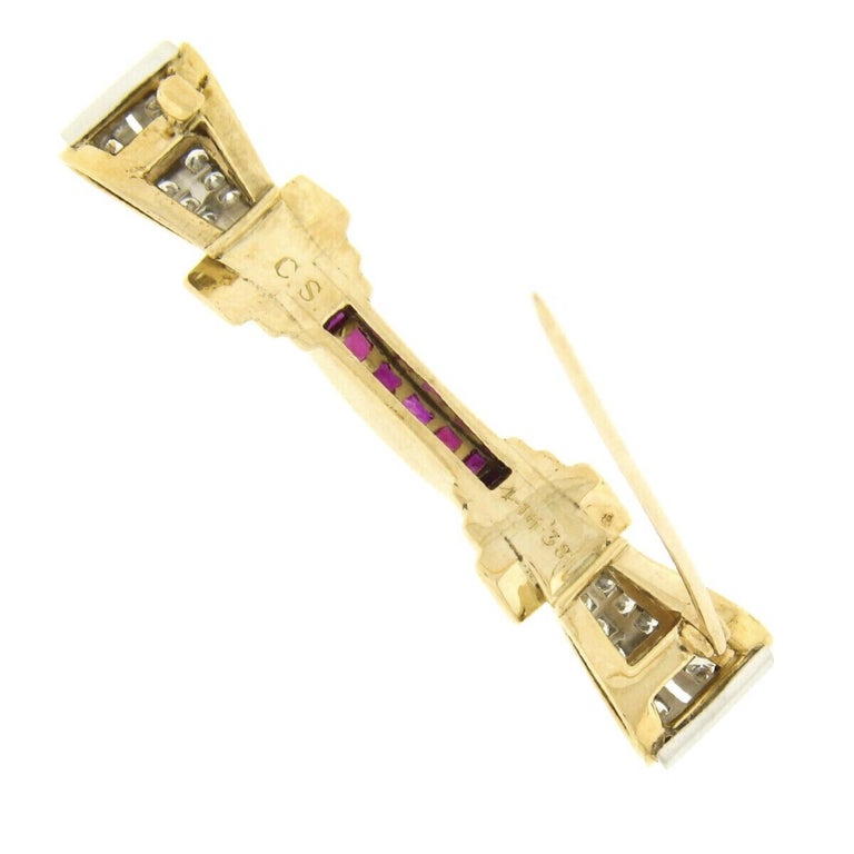 French Art Deco 18k Gold, Diamond and Ruby Bar Pin Brooch - Etsy