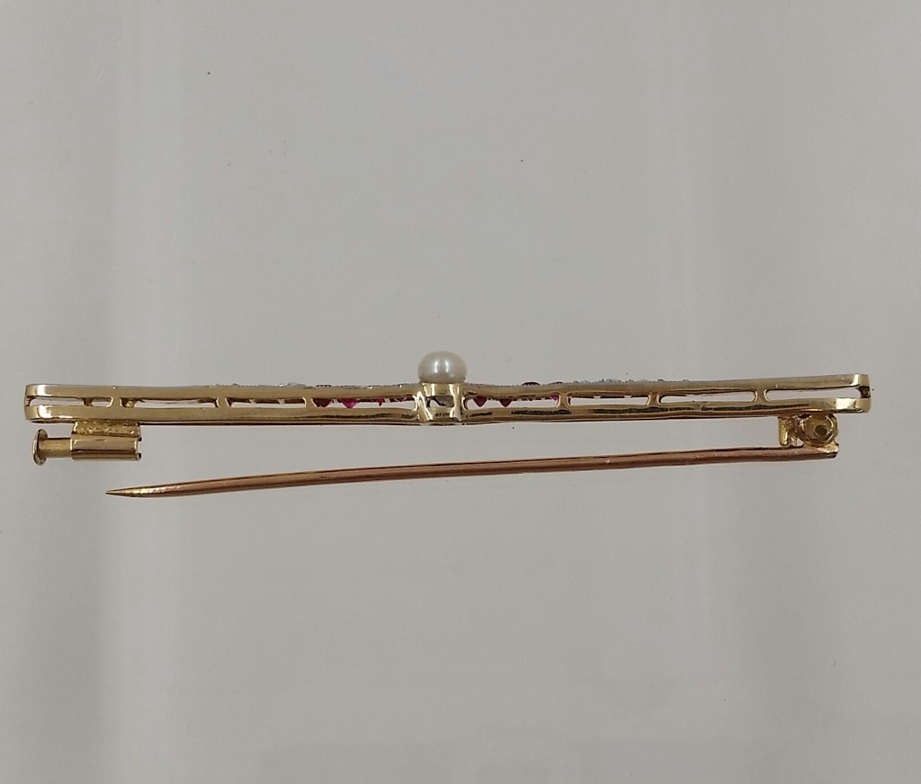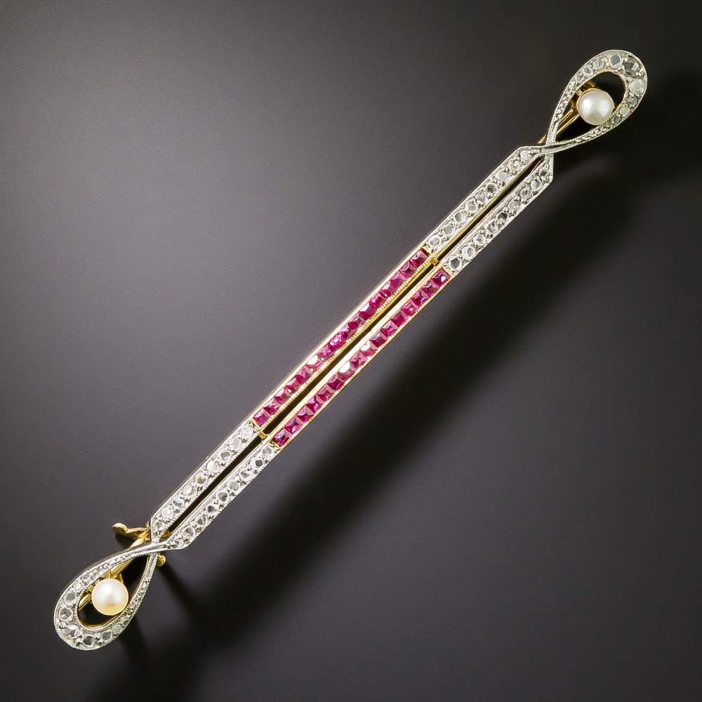 Sublime Circa 1900 Antique Ruby and Pearl Bar Pin – Fetheray