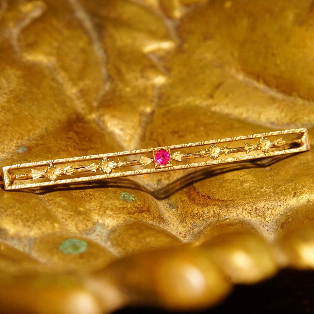 Antique American 10K Yellow Gold Ruby Openwork Bar Pin | Etsy