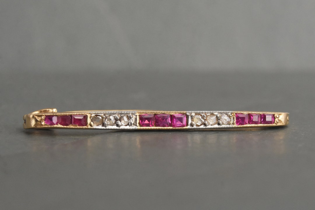 Vintage Ruby Diamond Bar Pin - Solvang Antiques