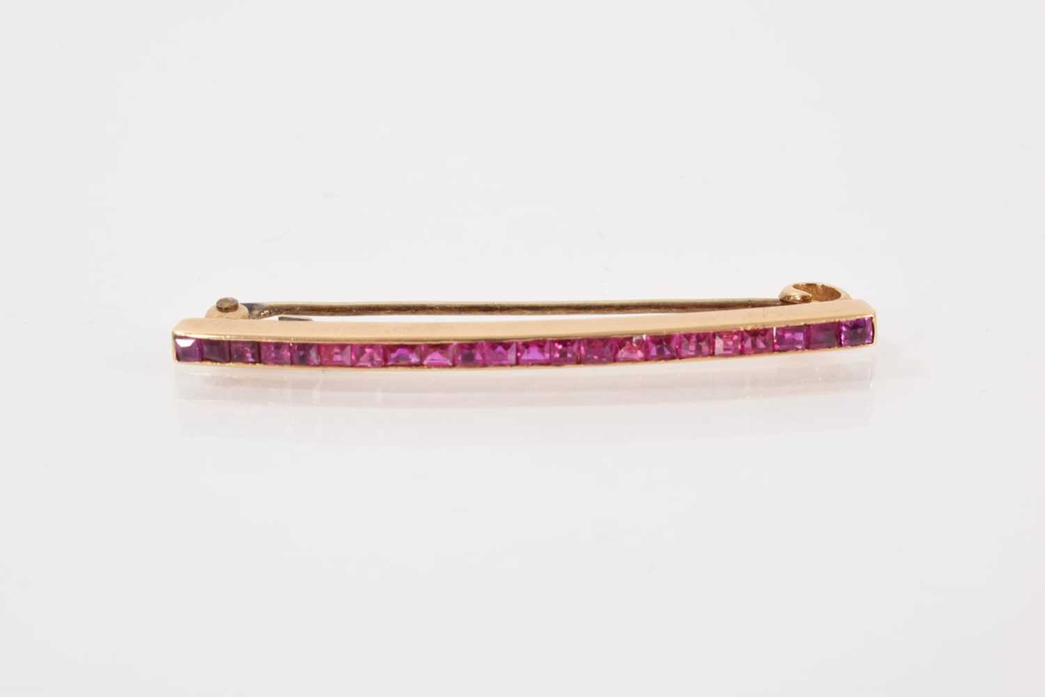Lot 670 - Art Deco ruby bar brooch/tie pin