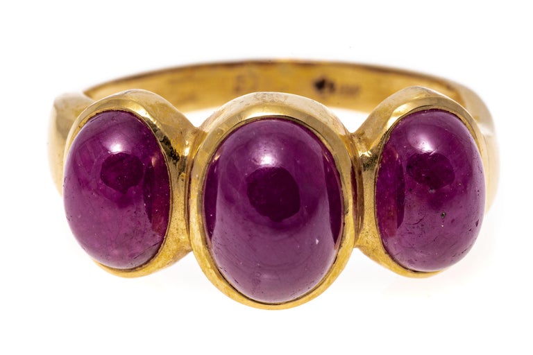 14K Yellow Gold Three Stone Bezel Set Ruby Cabchon Ring For Sale at 1stDibs