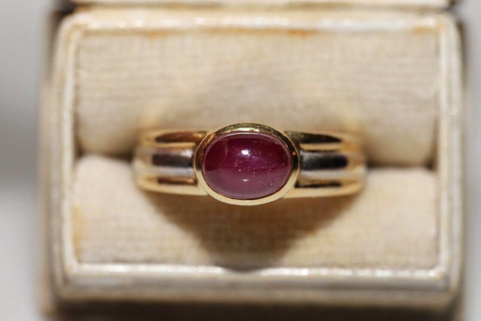 Vintage Circa 1980s 18k Gold Natural Cabochon Cut Ruby Decorated Ring ...