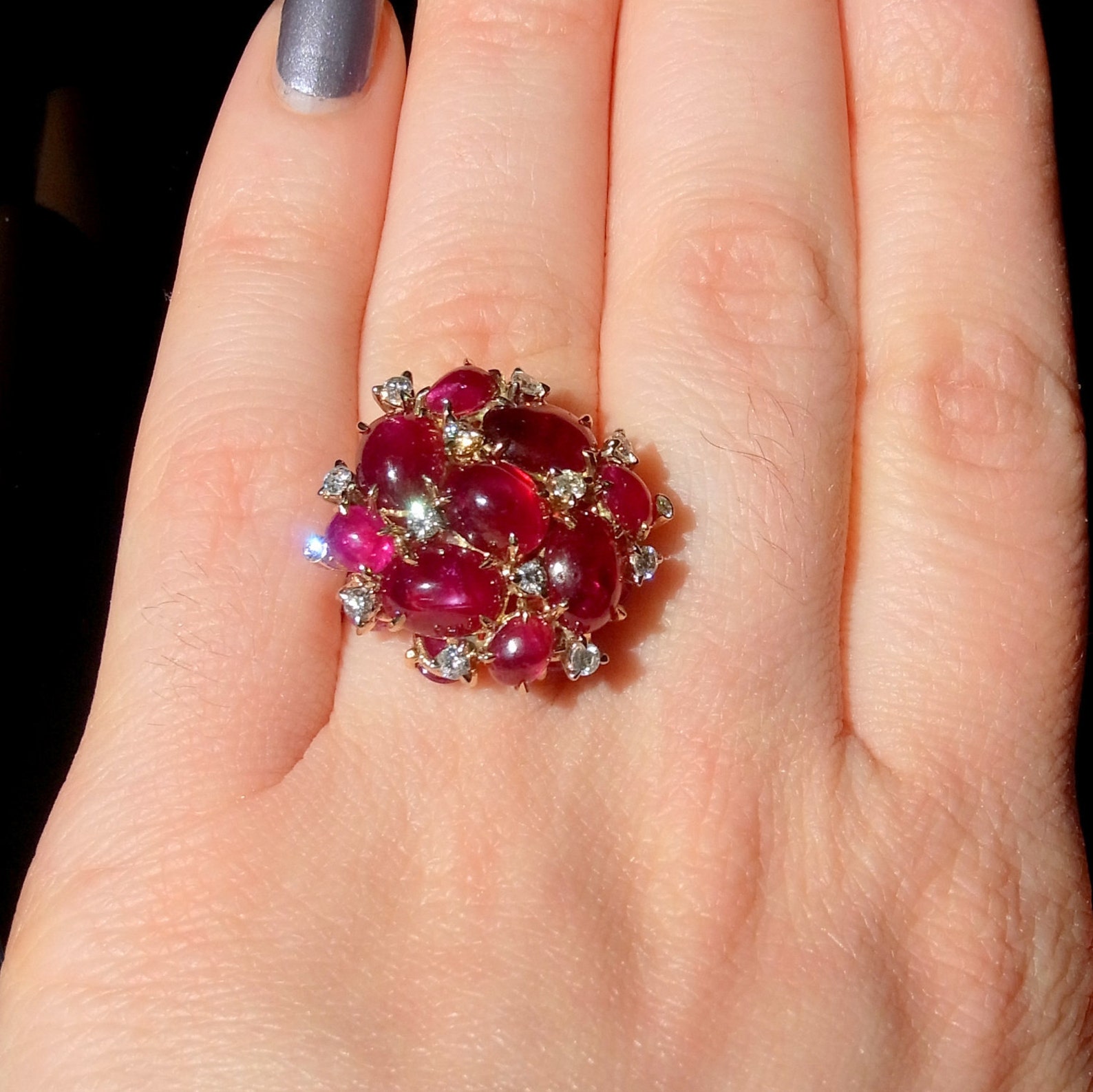 1960s Ruby Cabochon and Diamond Ring, 14k For Sale at 1stDibs