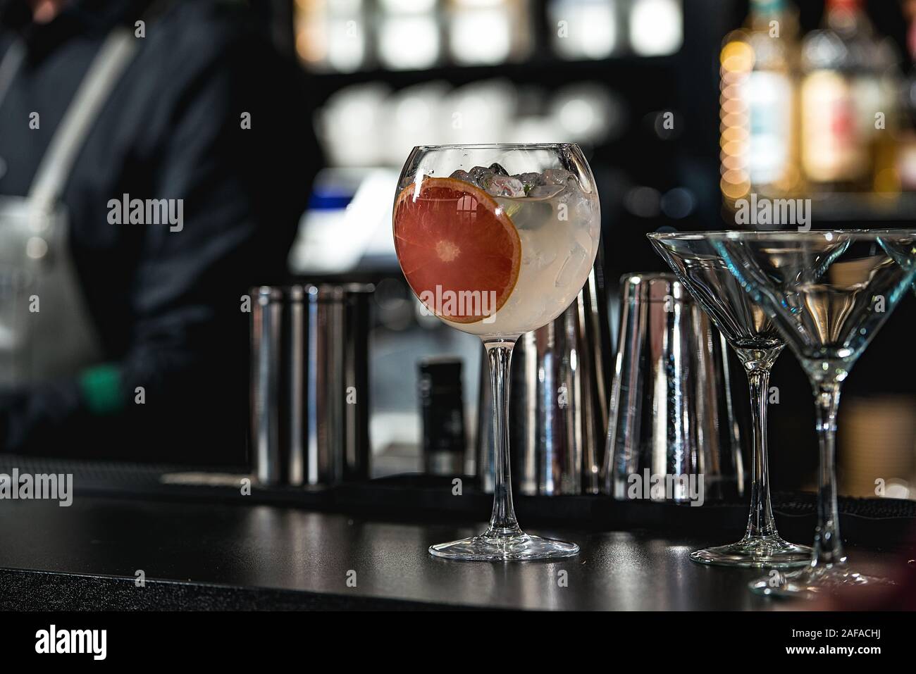 Refreshing Ruby Red Coctail With Grape Fruit Isolated On A Bar ...