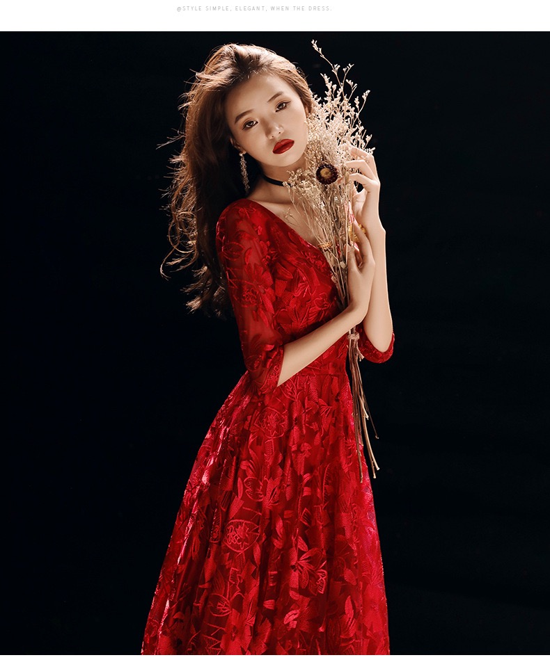 Style, Lace Red Prom Dress, Elegant Evening Dress, V-neck Charming ...