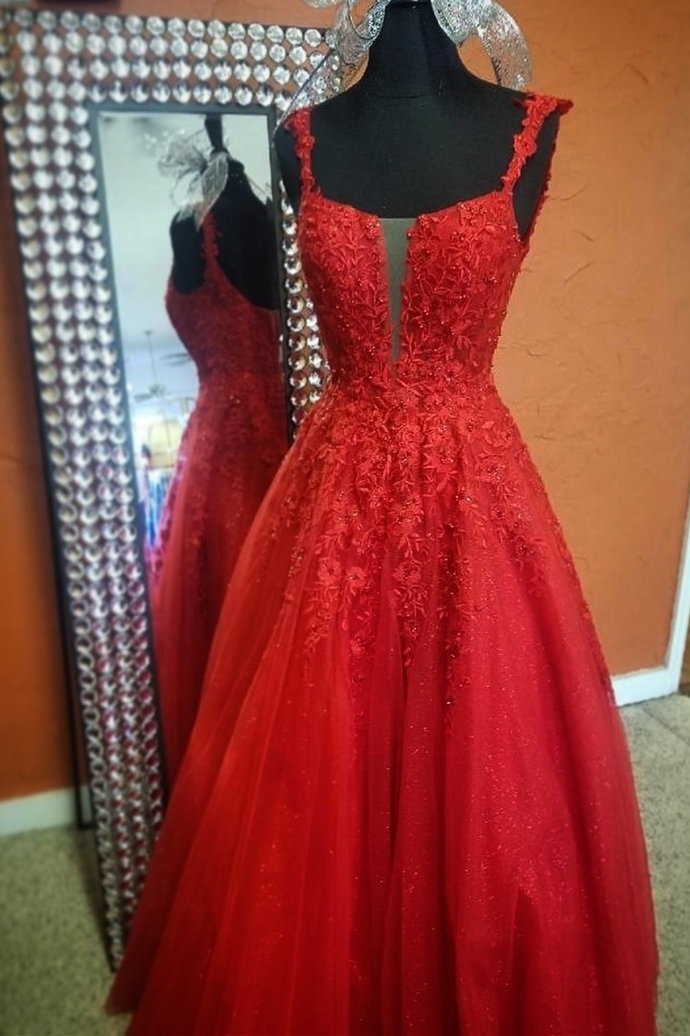 Ruby Outfit Elegant Tulle Red Appliques Beads Prom Dress, Formal ...