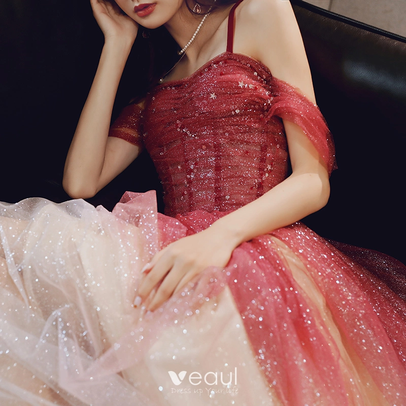 Elegant Red Gradient-Color Evening Dresses 2020 A-Line / Princess ...