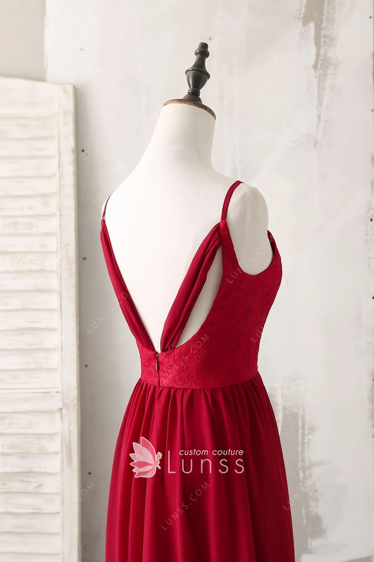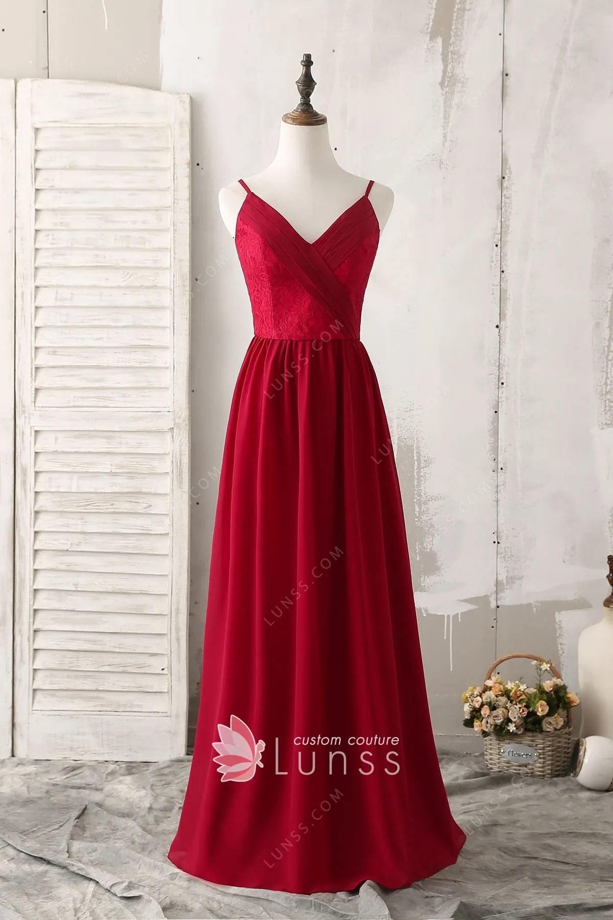 Elegant Ruby Lace and Chiffon V-neck Bridesmaid Dress - Lunss
