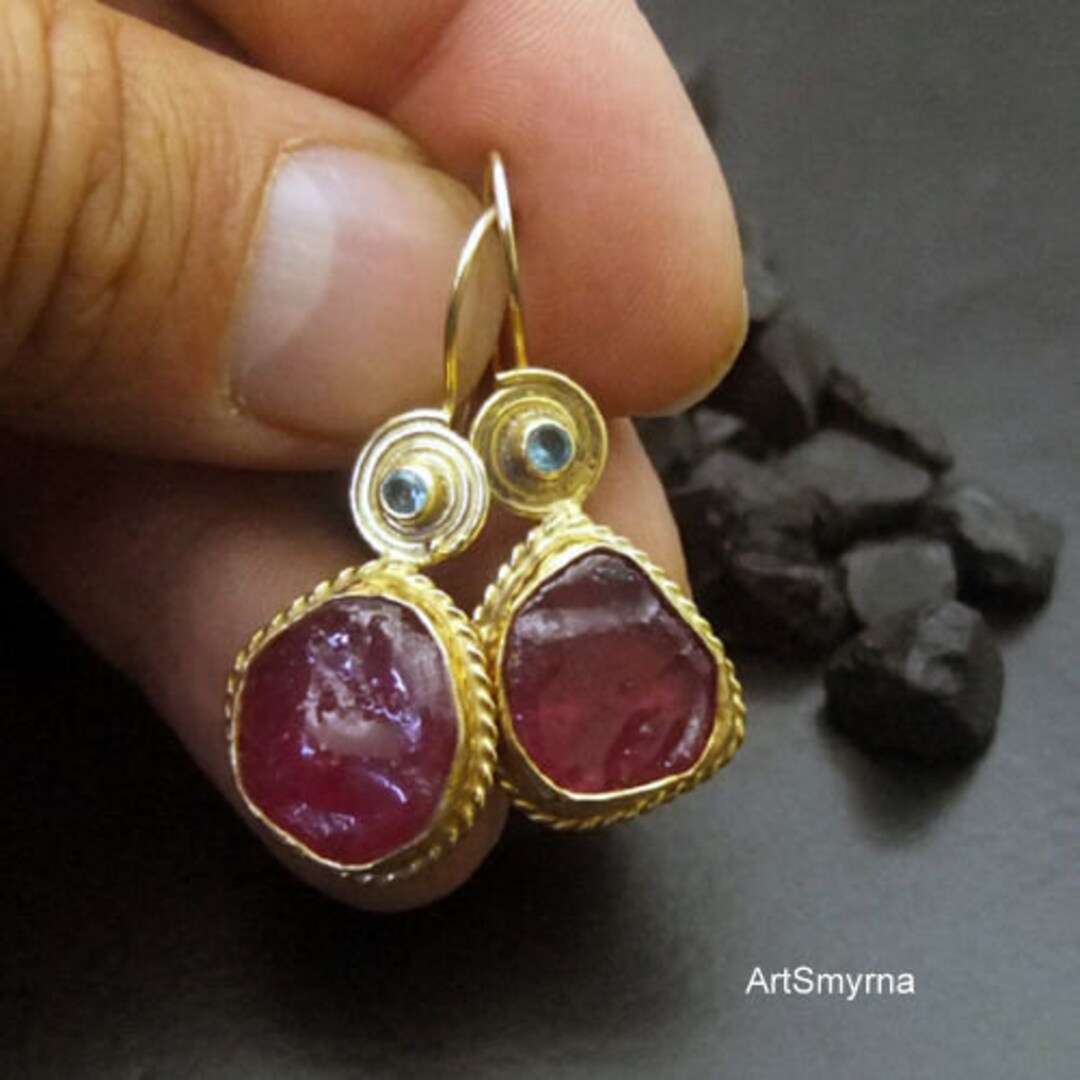 Handmade Ruby Earrings: 24K Gold Vermeil Over Sterling Silver - Etsy