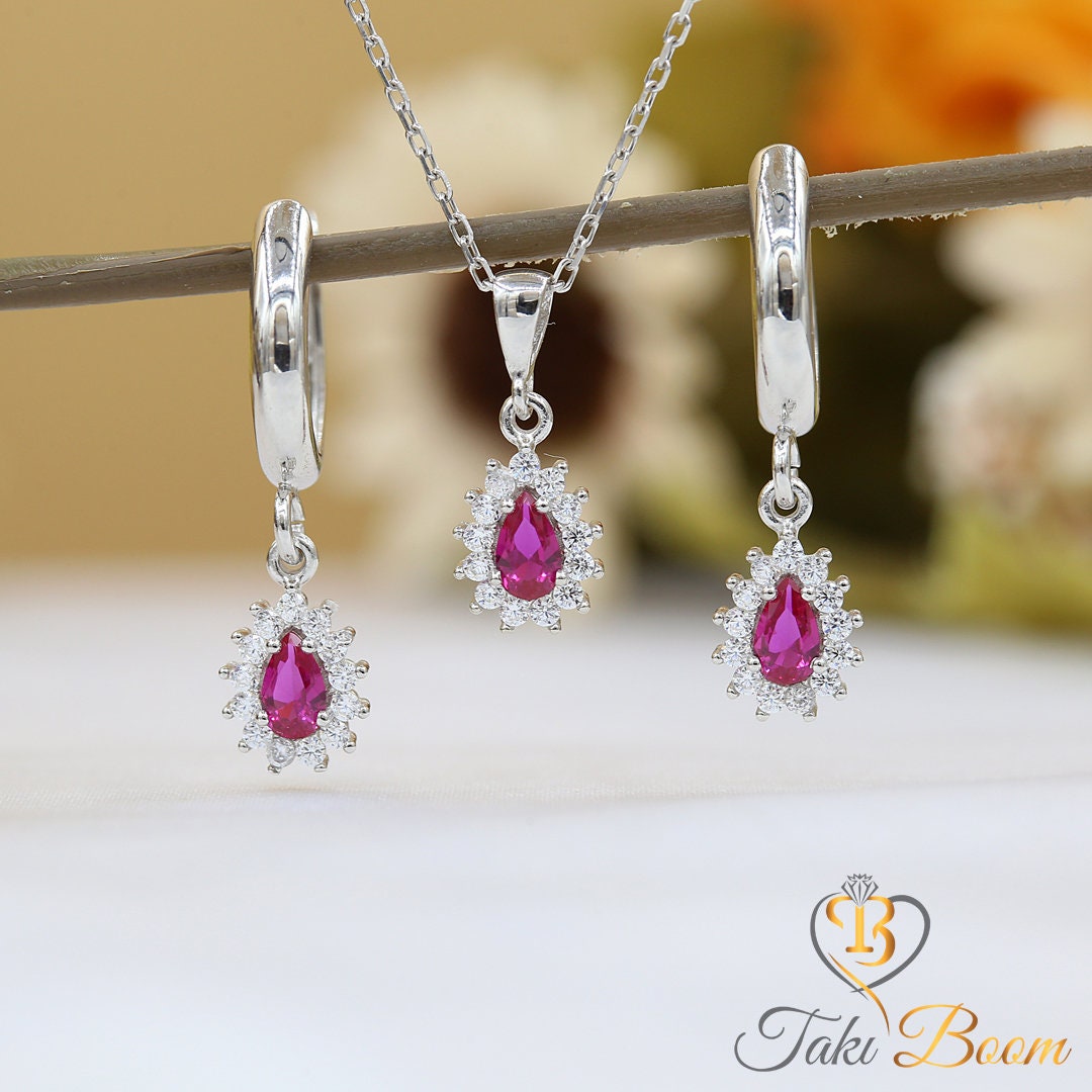 Ruby Jewelry Set for Women, Natural Ruby Set, 925 Sterling Silver Set ...