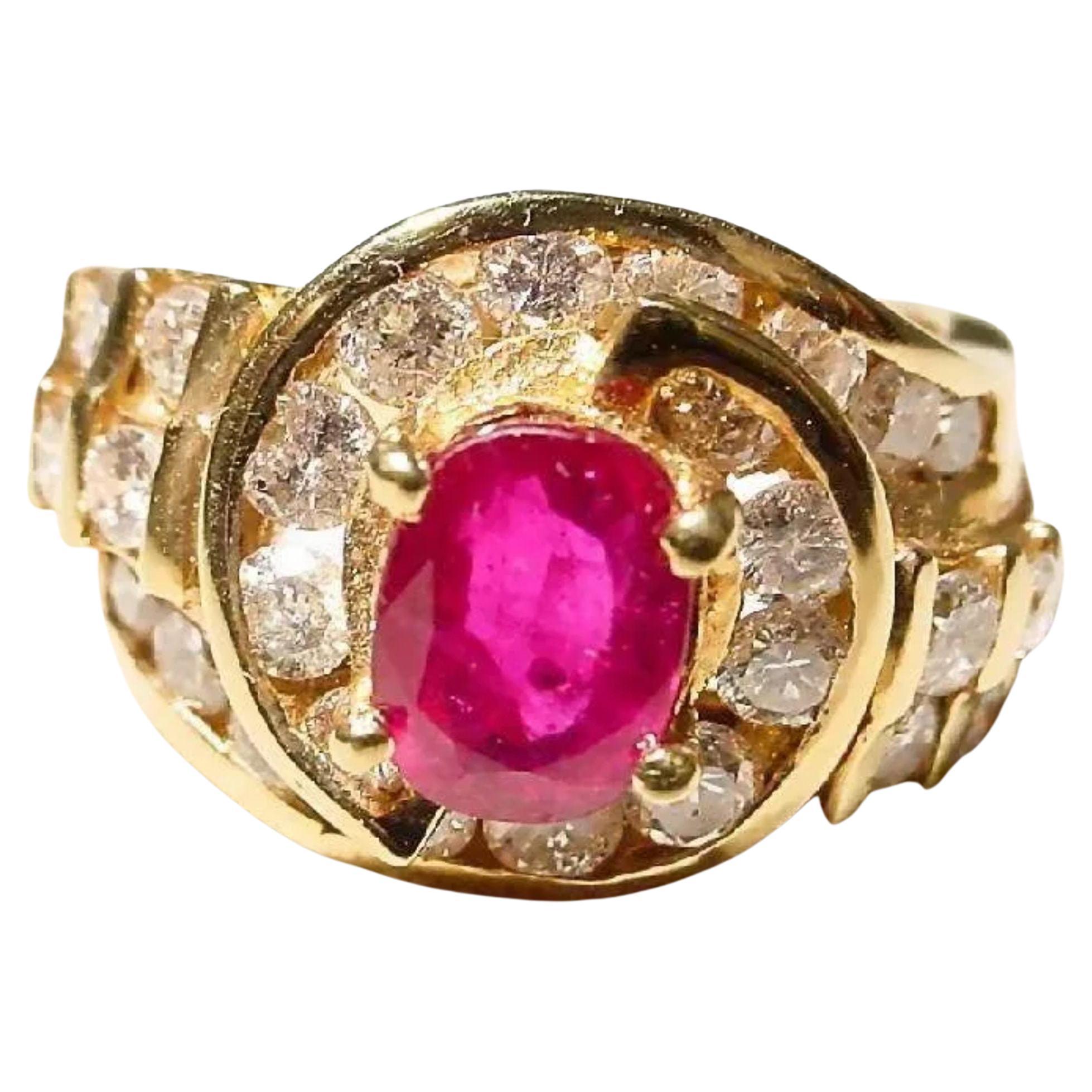1.93 Carat Oval Shape Ruby Ring with Diamonds in 10k Yellow Gold For ...