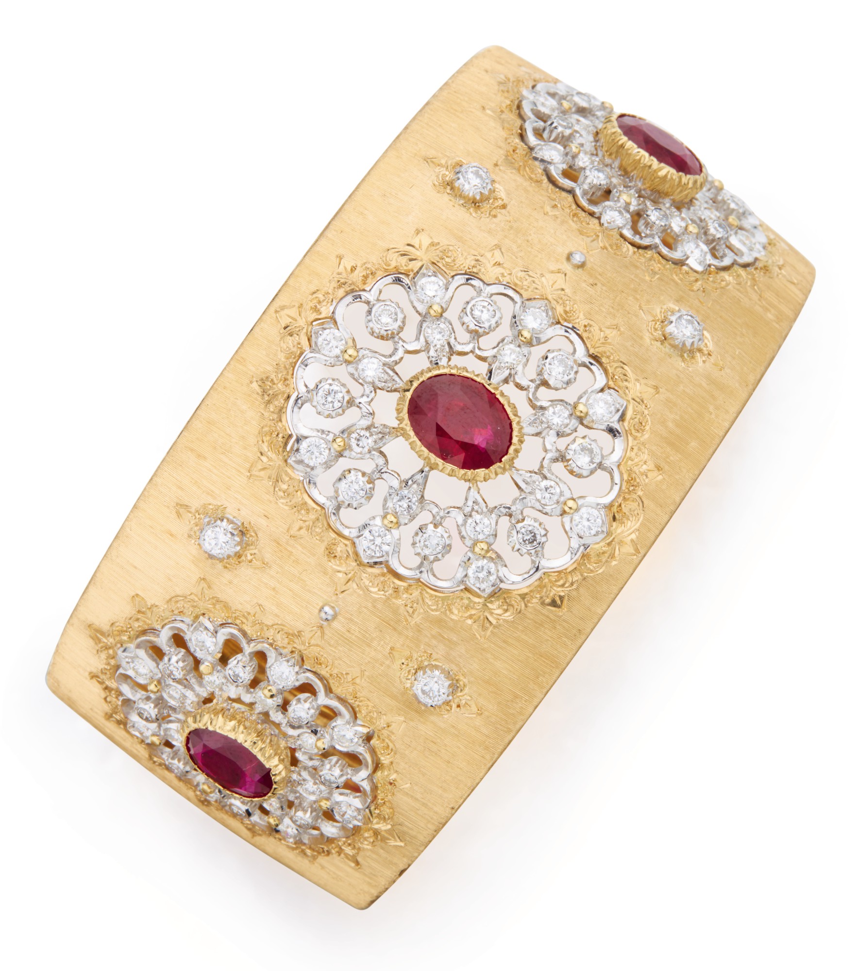 TWO-COLOR GOLD, DIAMOND AND RUBY CUFF-BRACELET, BUCCELLATI | Fine ...