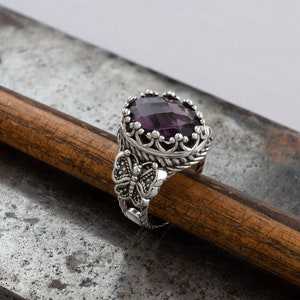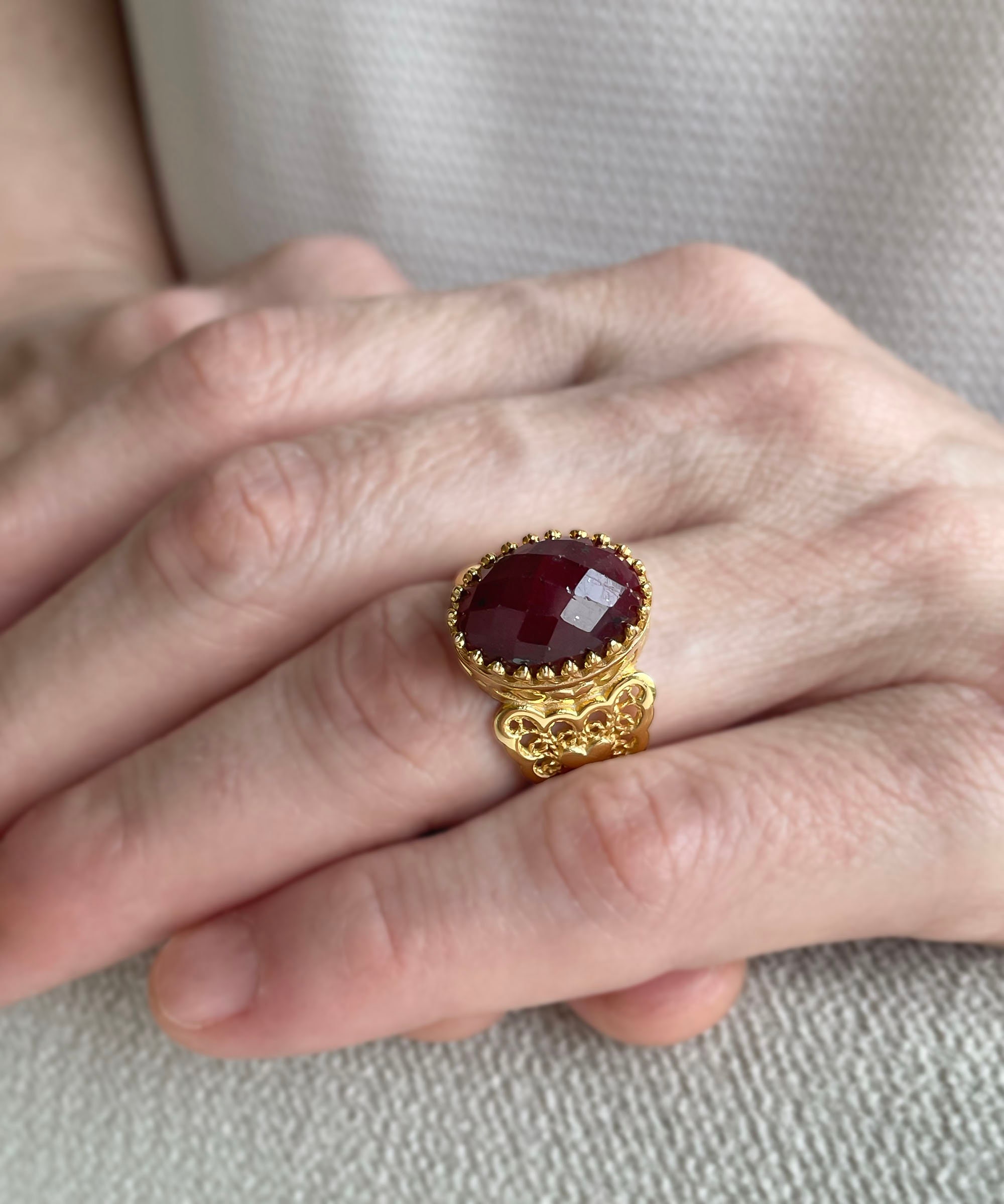Victorian Gothic Ring - Ruby Red Ornate Silver Filigree Steampunk Ring ...