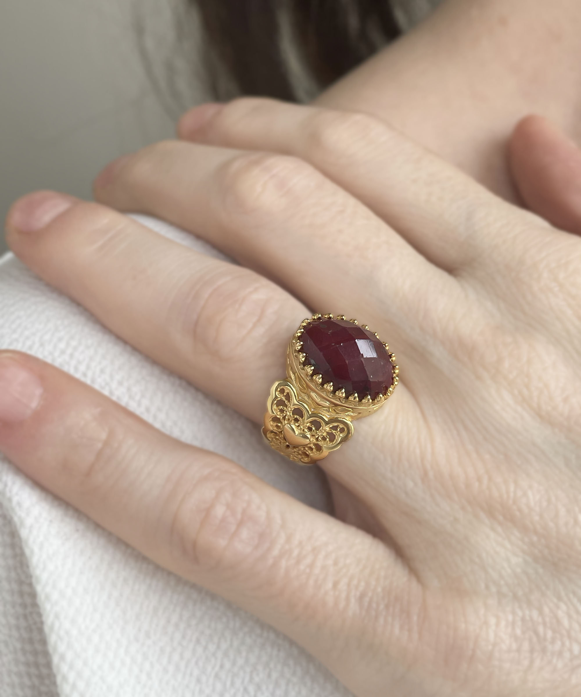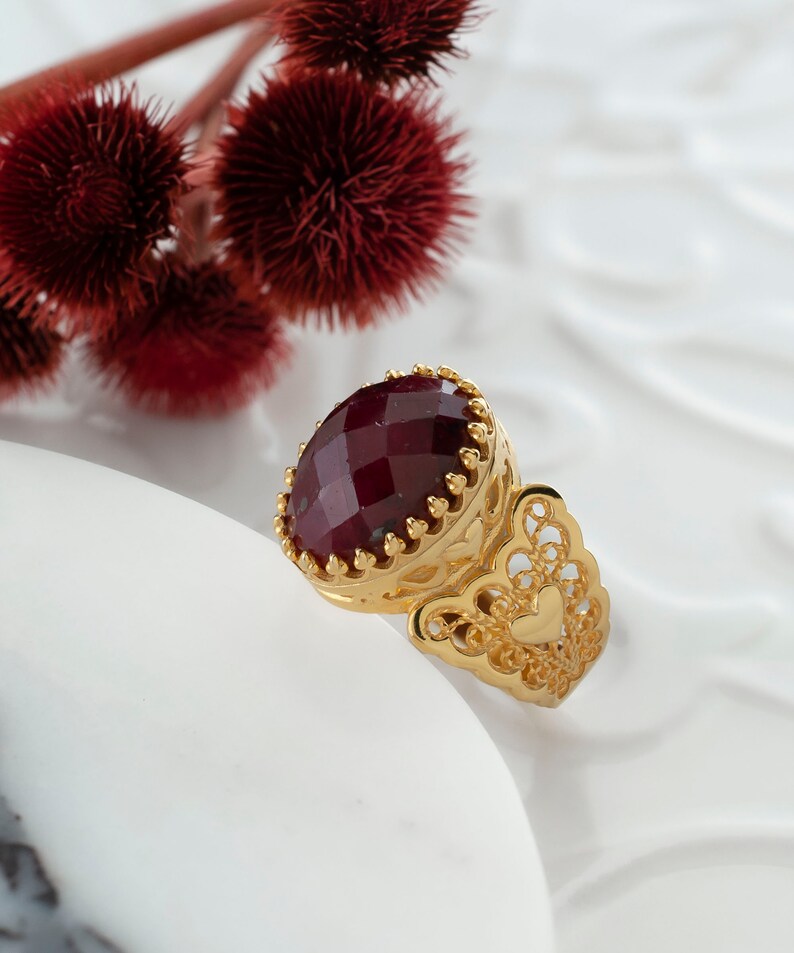 Gold Ruby Goth Edwardian Silver Red Heart Ring, 925 Sterling Corundum ...