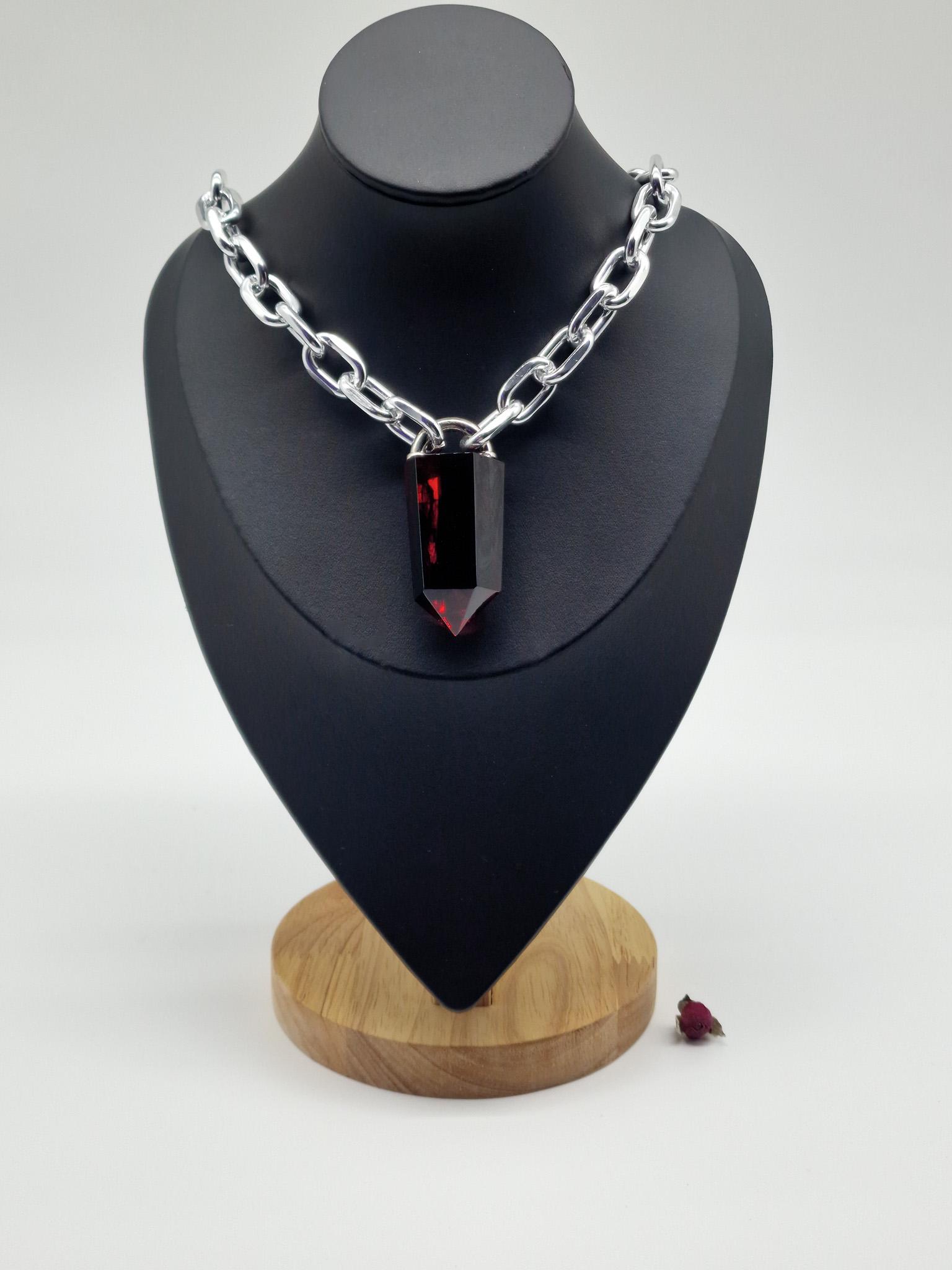 Crimson Ruby - Gothic Red and Black Chunky Crystal Necklace Resin ...