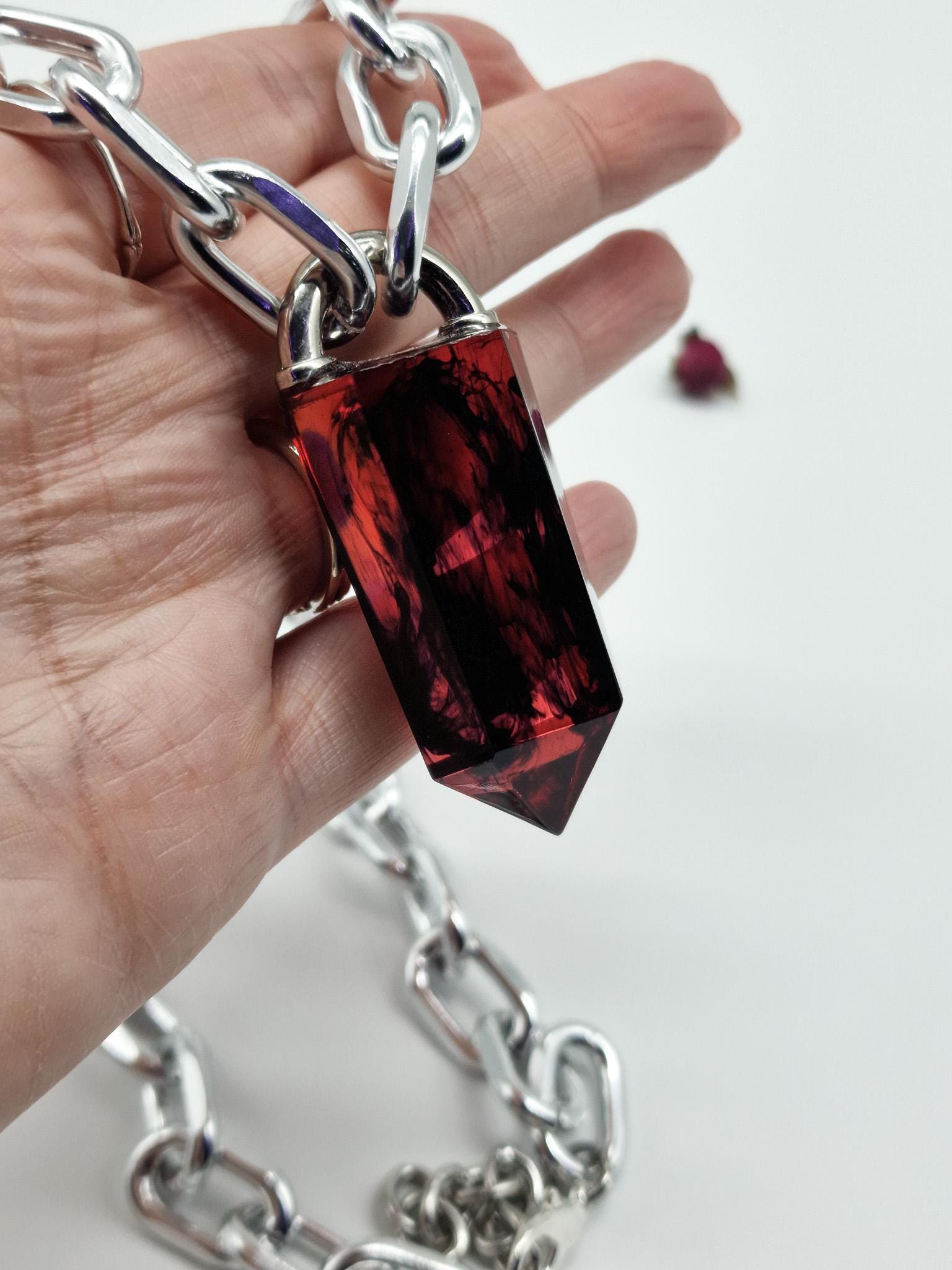 Scarlet Ruby- Gothic Red and Black Crystal Point Necklace Resin Pendant ...