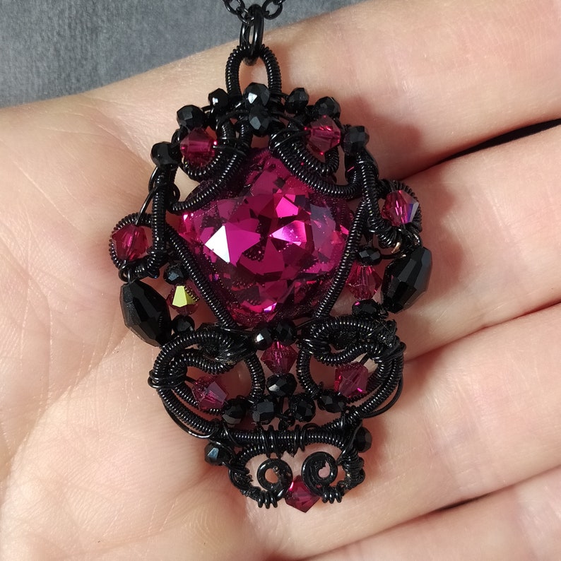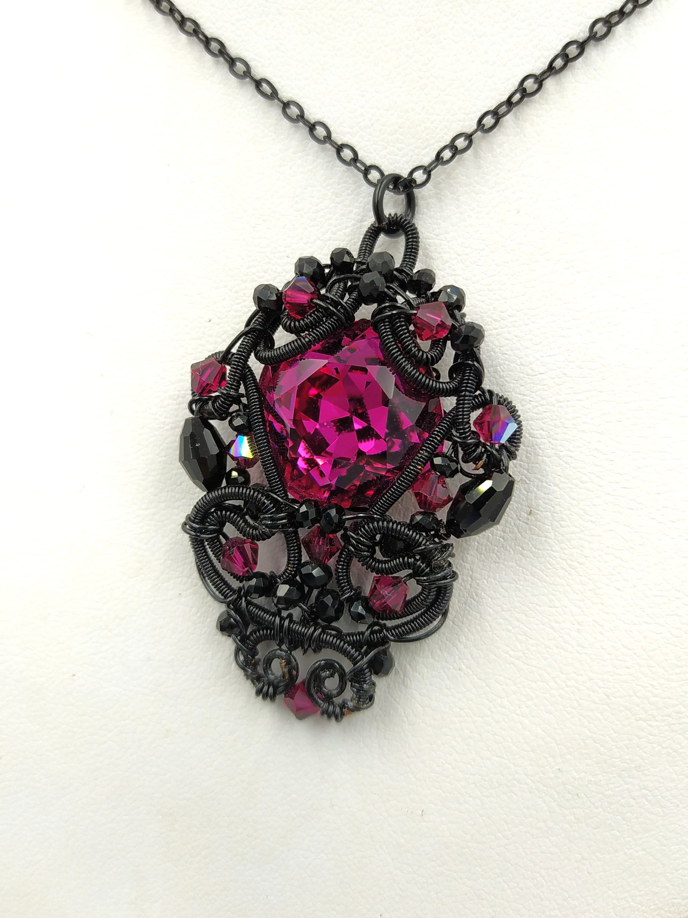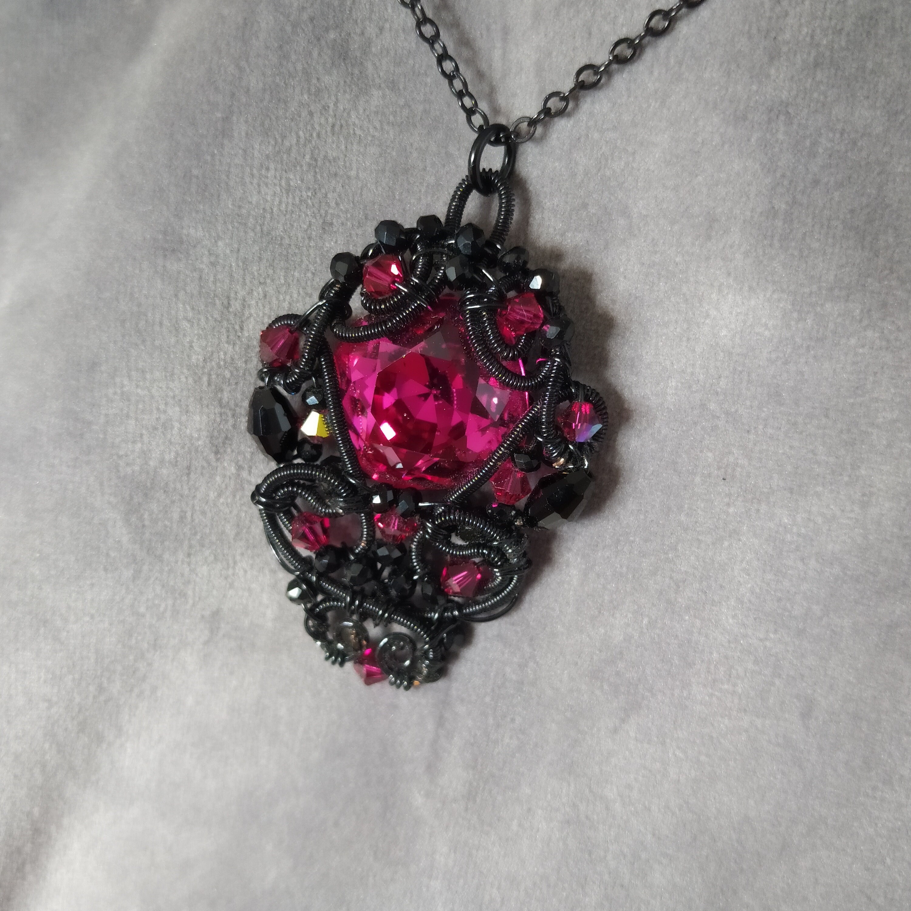 Ruby Red Crystal Black Wire Wrapped Pendant, Gothic, Victorian ...