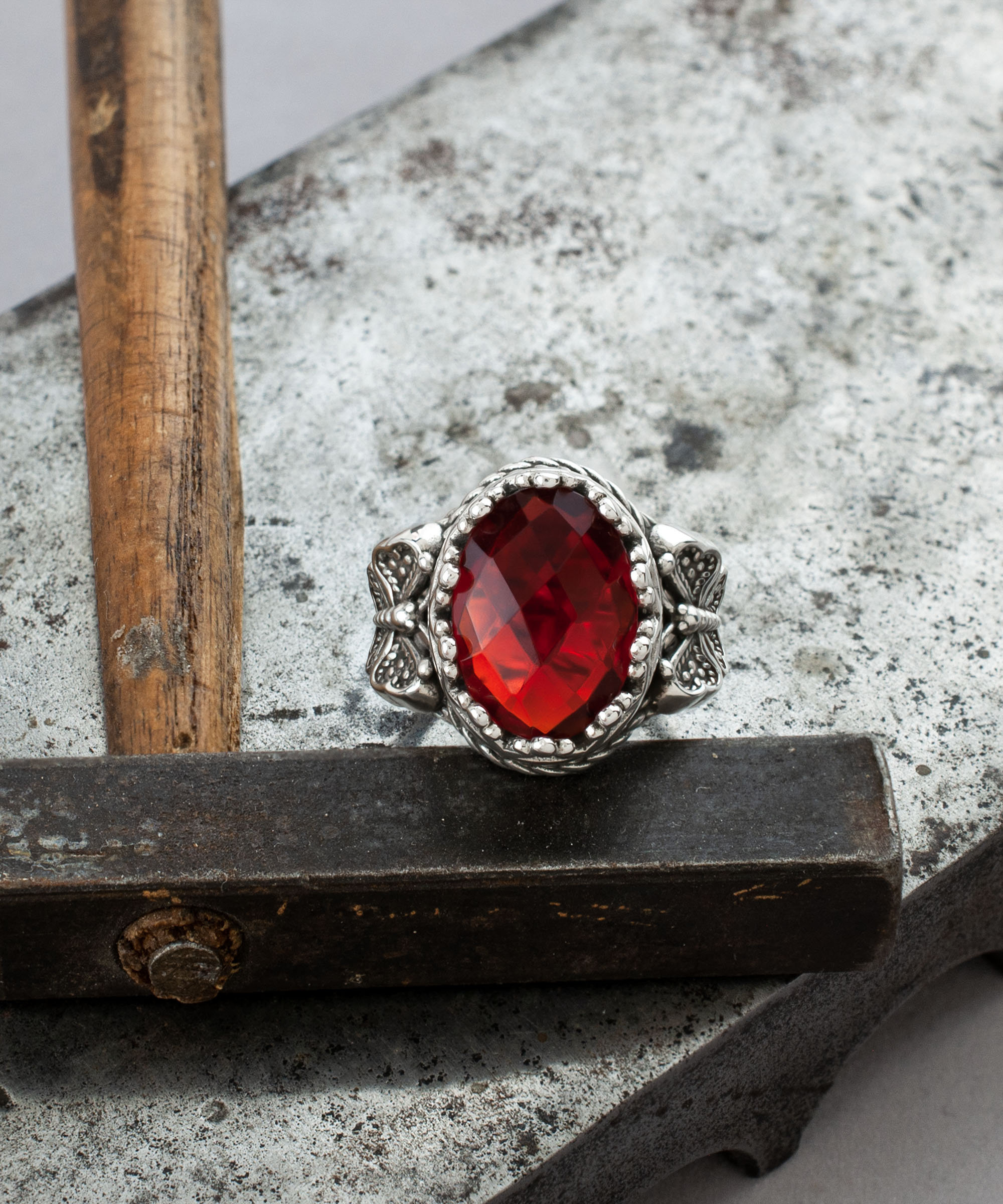 Gothic Lolita Goth Jewelry | Black Silver Oxidized Blood Red Ruby Ring ...