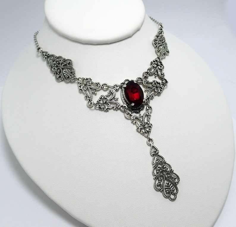 Silver Victorian Ruby Flourish Necklace-bridal Jewelry-victorian Gothic ...