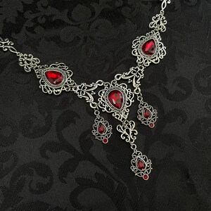 Ruby Red Antique Silver Filigree Goth Victorian Wedding Bridal Necklace ...