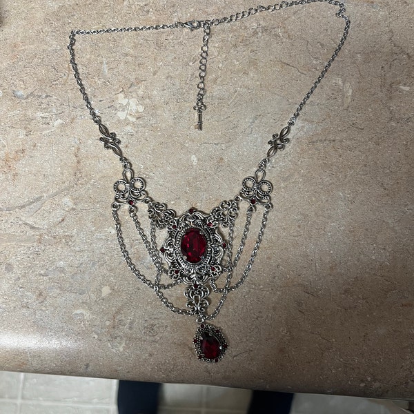 Astarion Style Ruby Gothic Necklace stainless Steel, Goth Jewelry ...
