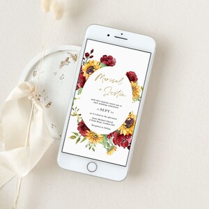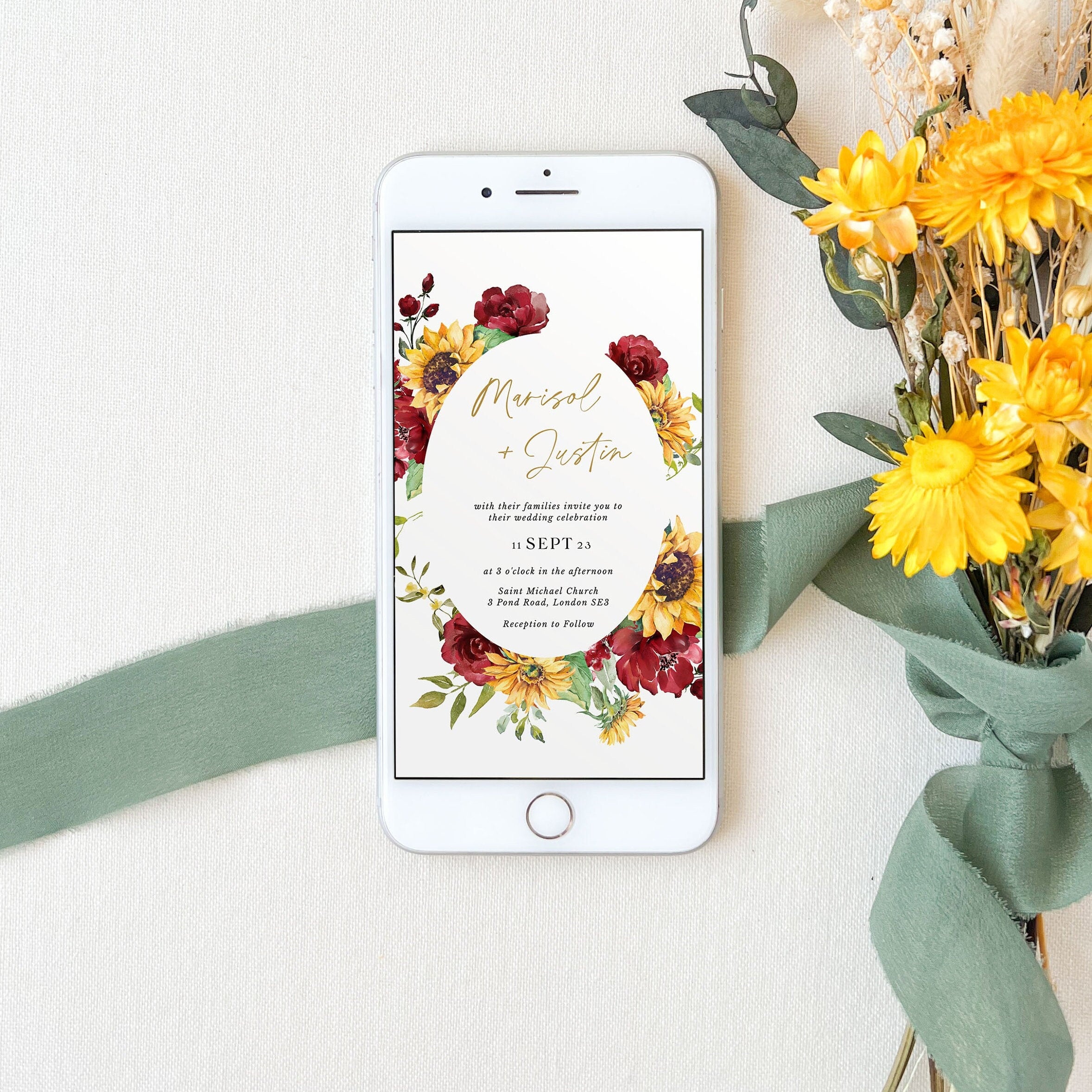 RUBY Digital Wedding Invitations Red Roses and Sunflowers