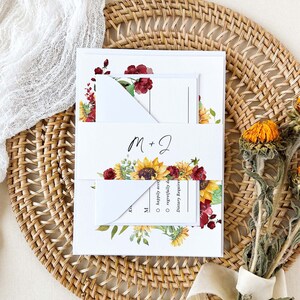 RUBY Red Roses and Sunflower Wedding Invitation and Rsvp, Rustic ...