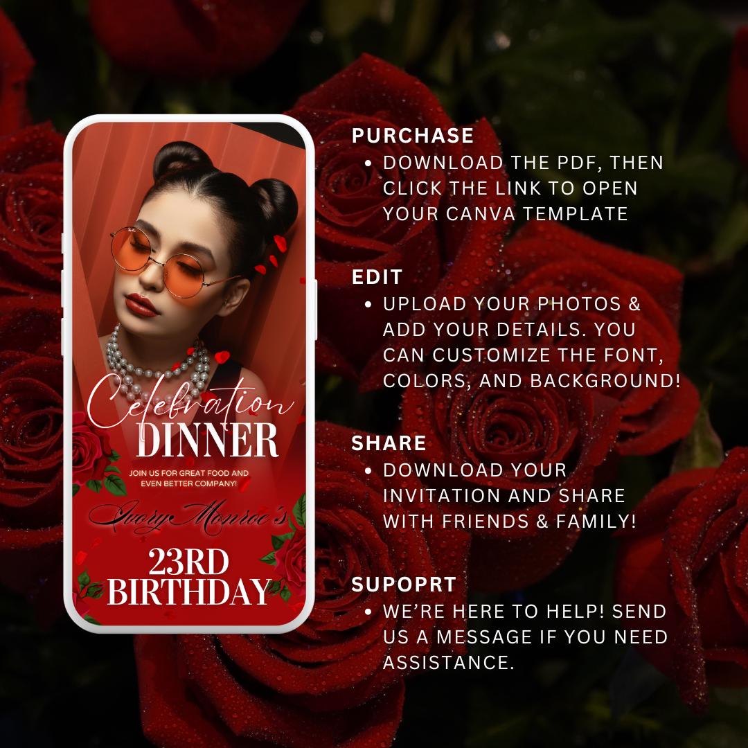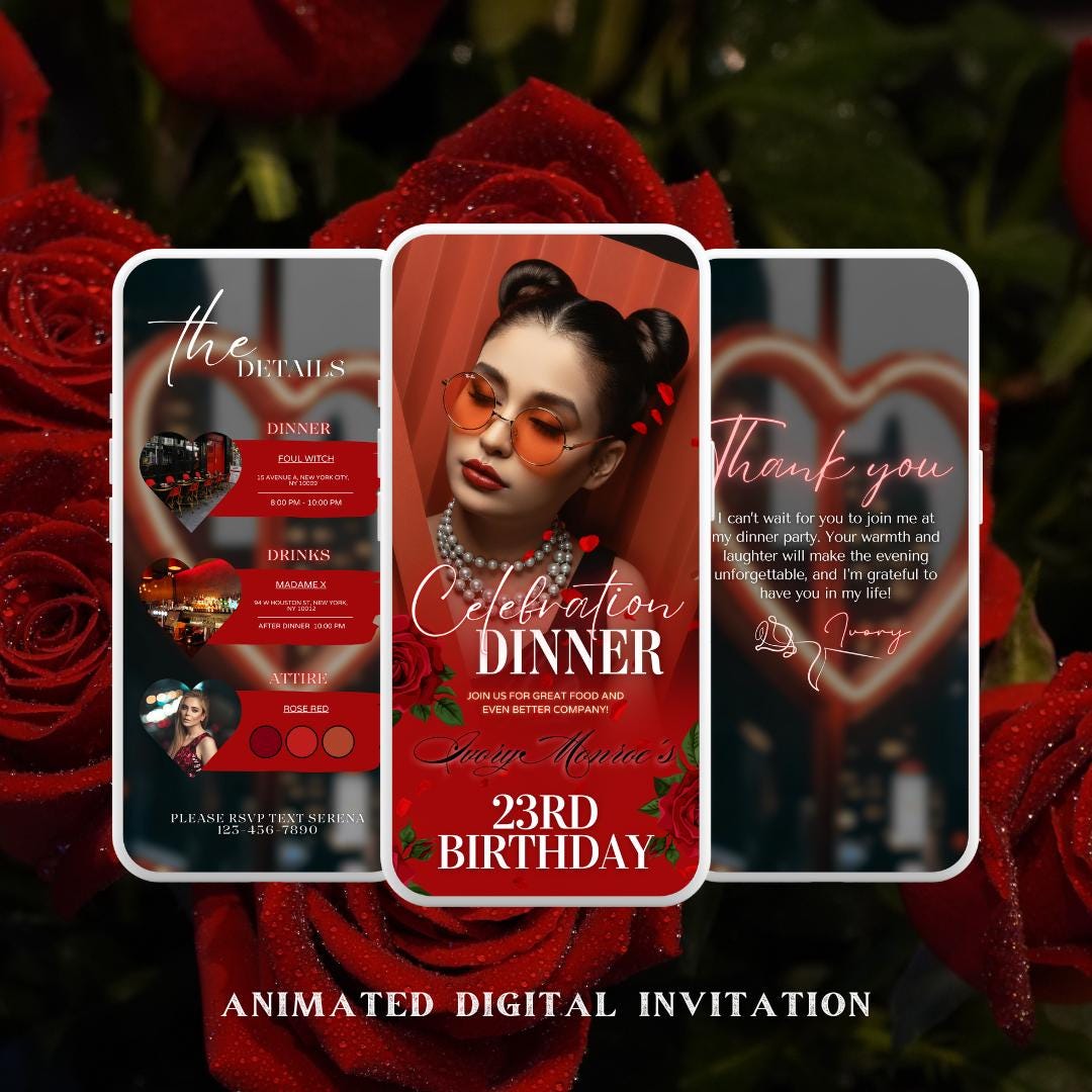 Ruby Rose Red Animated Birthday Invitation Video Template – Editable ...