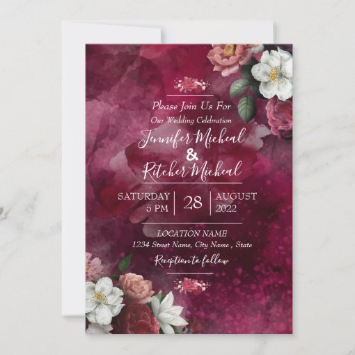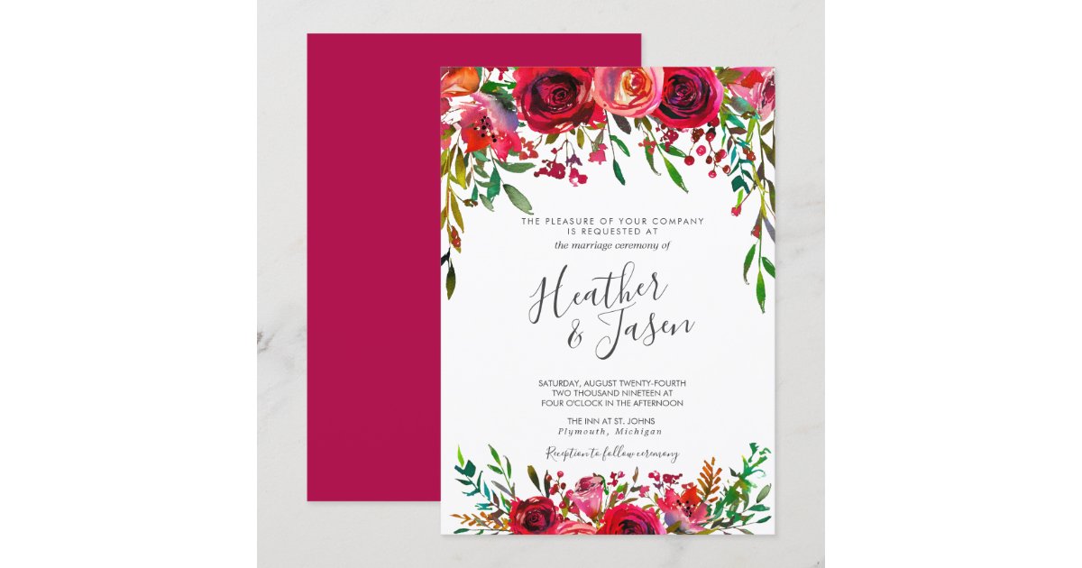 Modern Watercolor Red ruby Burgundy floral theme Invitation | Zazzle