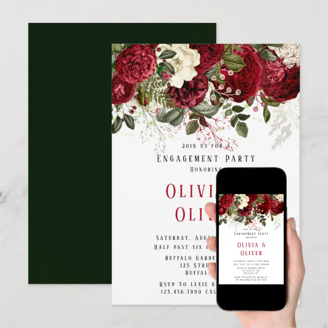 Elegant Ruby Rose Printed Engagement Invitation - Your Perfect Invite