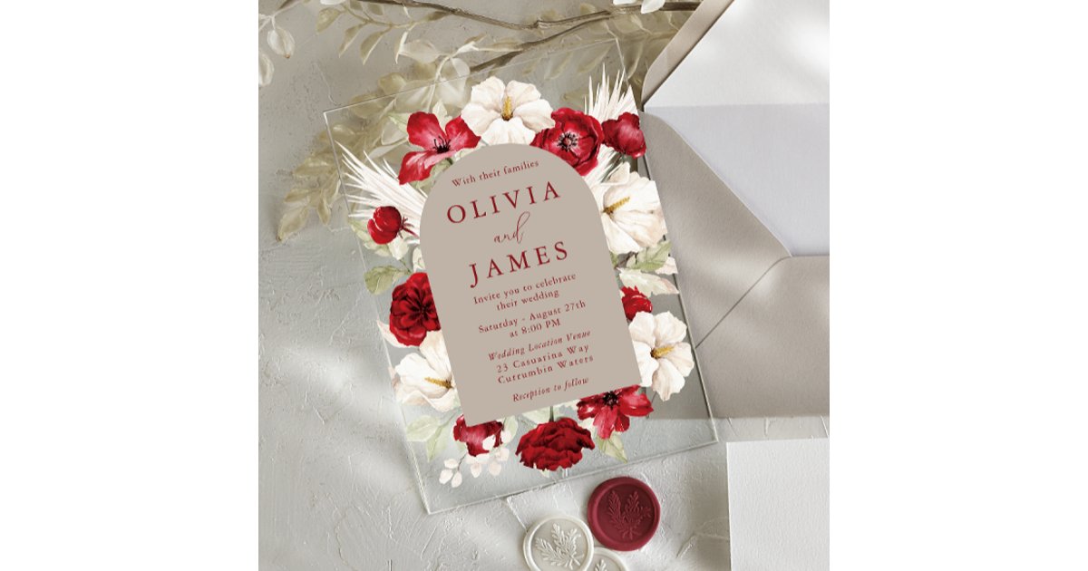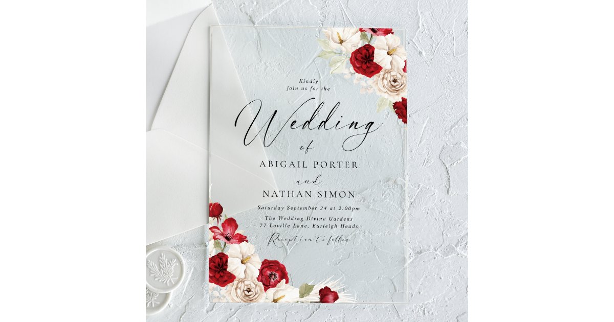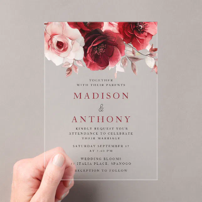 Ruby Red Wine Luxe Radiant Floral Wedding Acrylic Invitations | Zazzle