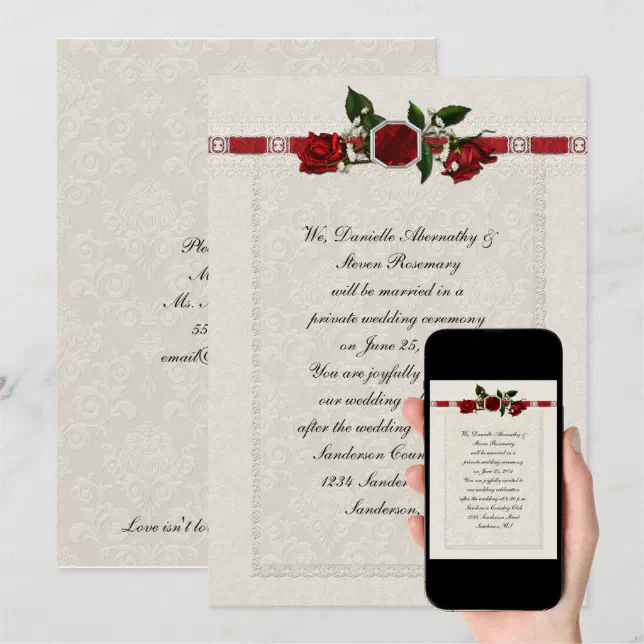 Ruby and Red Roses Ribbon Post Wedding Invitation | Zazzle