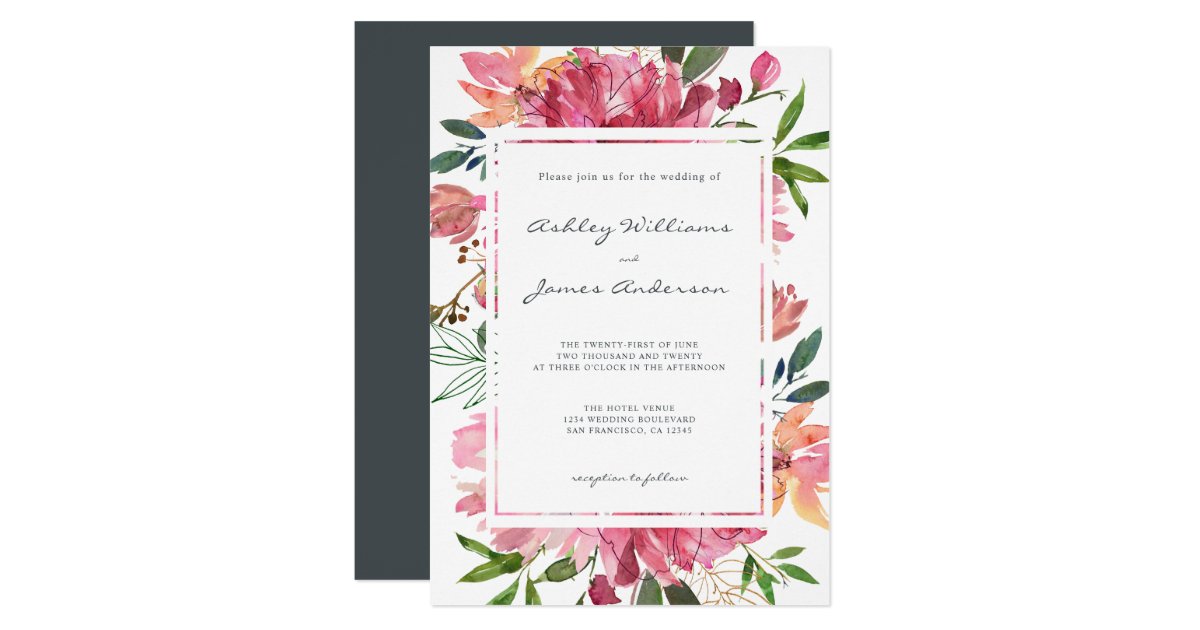Ruby Pink Peony Floral Botanical Wedding Invitation | Zazzle