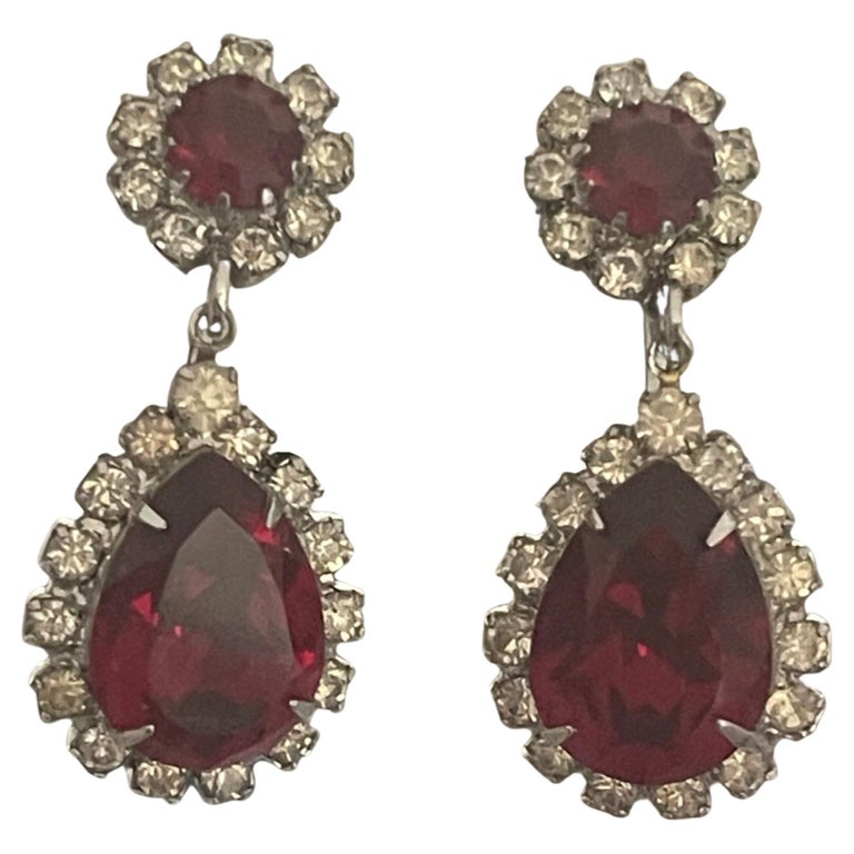 Designer Kramer Ruby Red Paddle Back Rhinestone Earrings. Circa. The ...