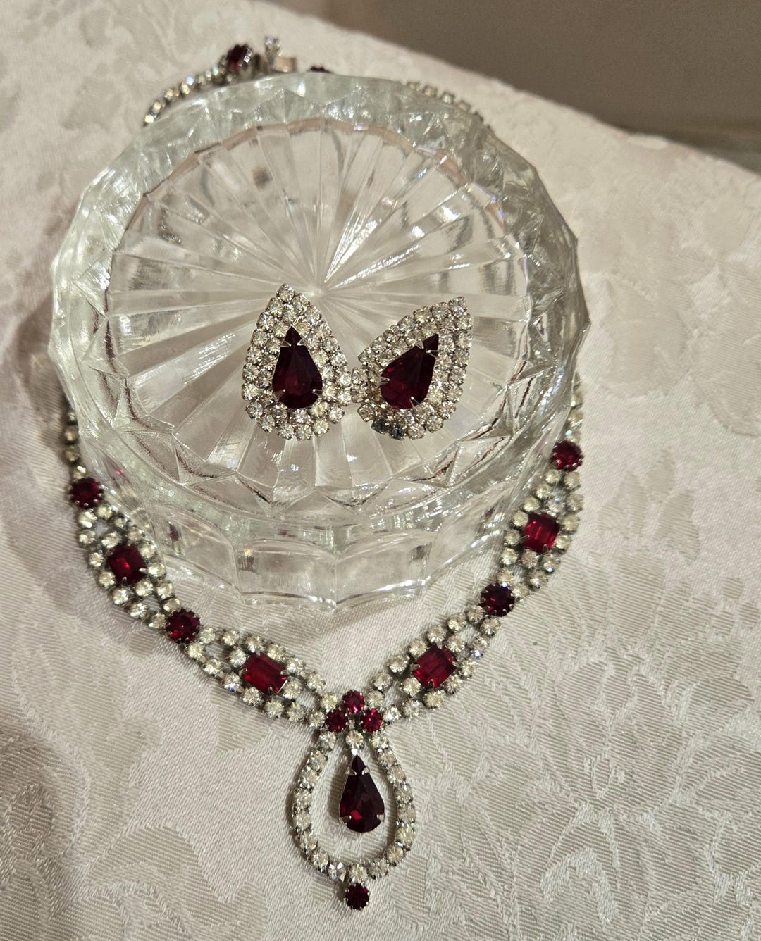 Vintage Kramer of NY Rhinestone and Faux Ruby Necklace and Clip Earring ...