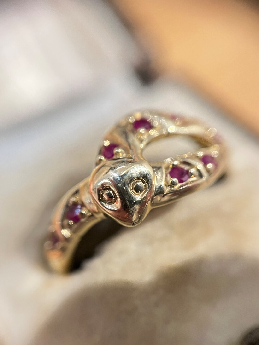 Victorian Inspired 375 9K 9ct Yellow Gold Ruby Coiled Snake Reptile ...